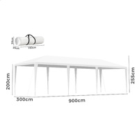 ALFORDSON Gazebo 3x9m Outdoor Wedding Camping Marquee Canopy Portable White