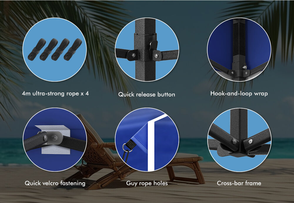 Made from high-quality 600D Oxford fabric, our gazebo is built to withstand the challenges of Australian weather, including extreme sunlight, heavy rain, and occasional wind gusts. Its robust frame, supported by 4 ropes and 4 pegs, provides stability and long-lasting durability, while the canopy offers significant shade and protection against harmful UV rays.