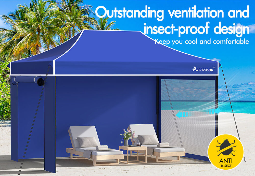 ALFORDSON Gazebo 4.5x3m Pop Up Marquee 600D Oxford Folding Camping Tent Blue