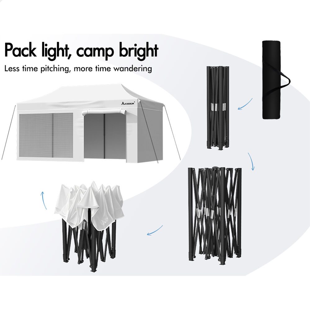 ALFORDSON Gazebo 6x3m Pop Up Marquee 600D Oxford Folding Camping Tent White