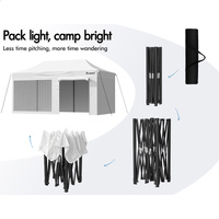 Our gazebo features a roomy layout that can host sizable gatherings, making it perfect for lively markets, exciting sports events, scenic camping trips, colourful garage and yard sales, enchanting school celebrations, and appealing trade show exhibits. Its portable design allows for easy transportation of your gazebo during travels or camping trips.