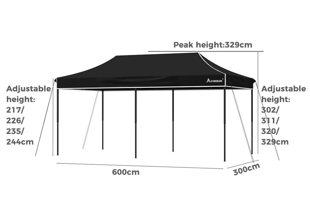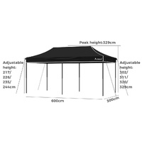 ALFORDSON Gazebo 6x3m Pop Up Marquee 600D Oxford Folding Outdoor Tent Black