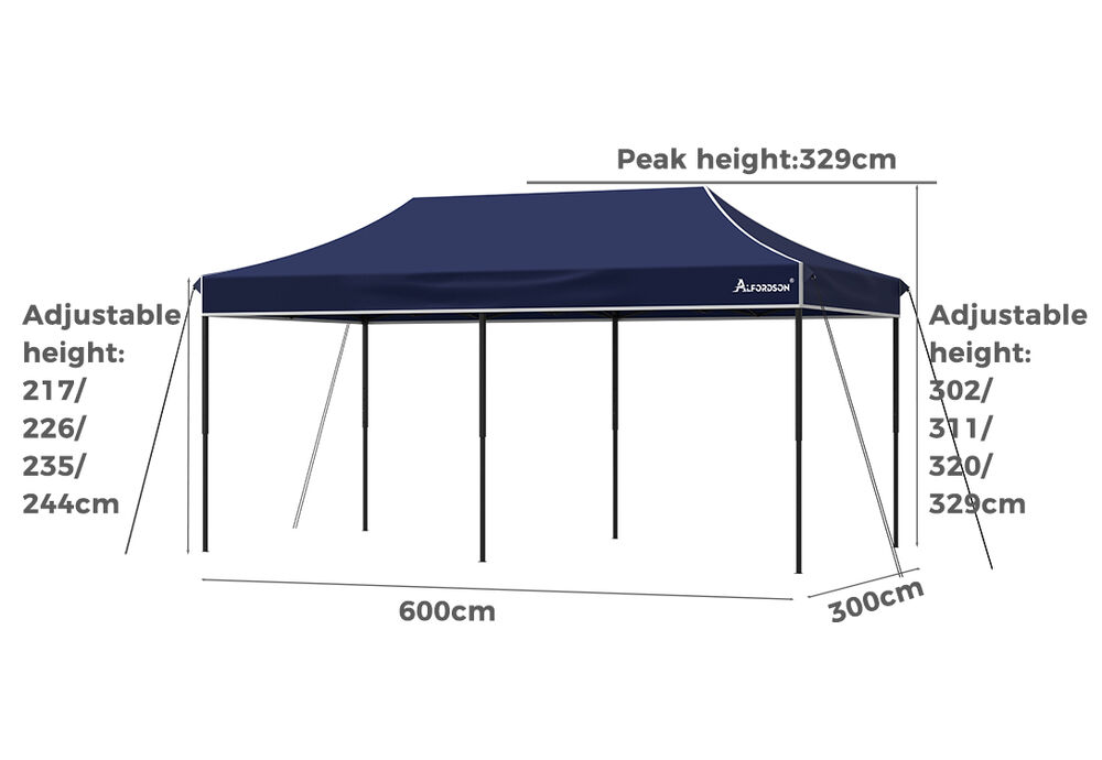 ALFORDSON Gazebo 6x3m Pop Up Marquee 600D Oxford Folding Outdoor Tent Navy