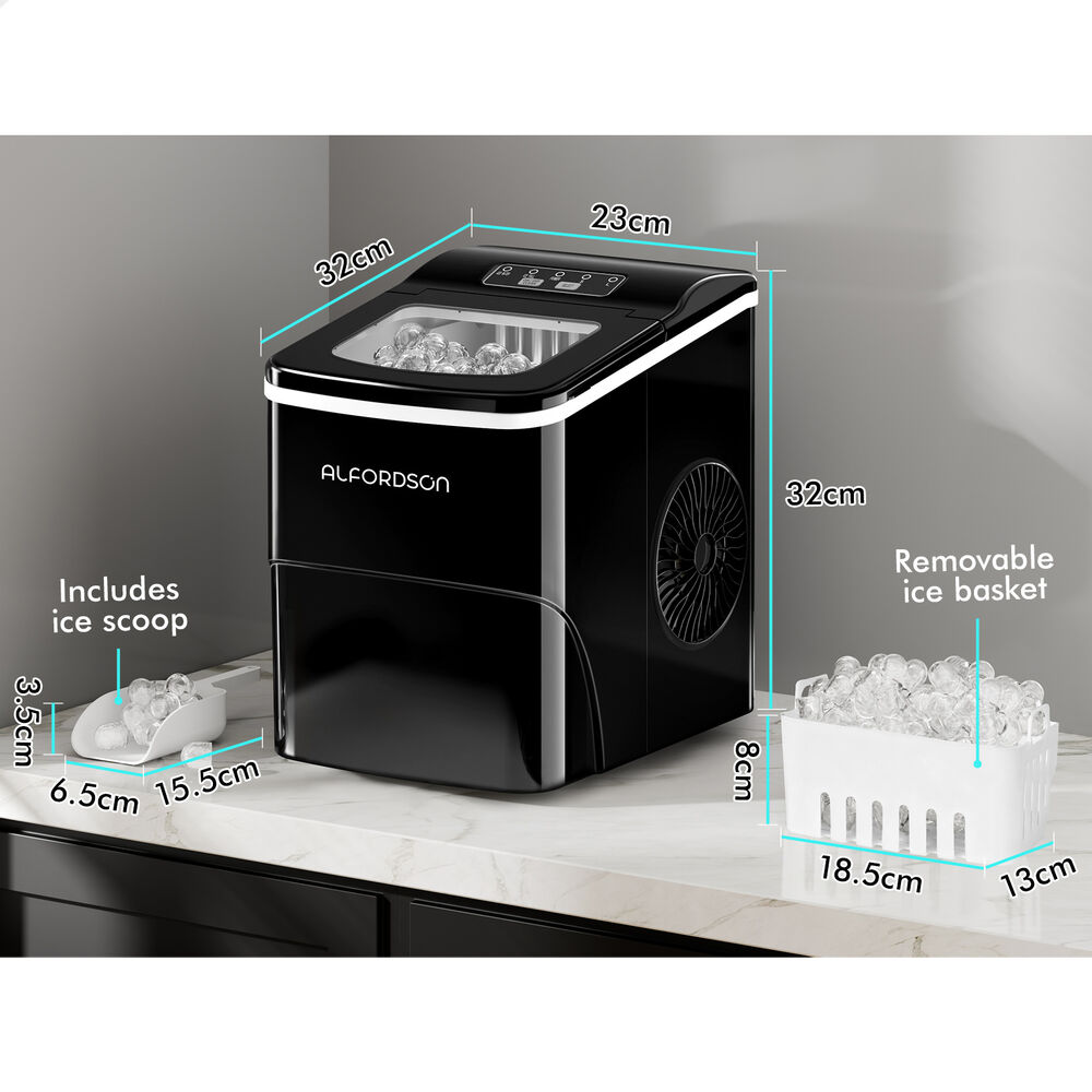 ALFORDSON Ice Maker Machine Commercial Portable 12kg Ice Cube Tray 2.2L Black