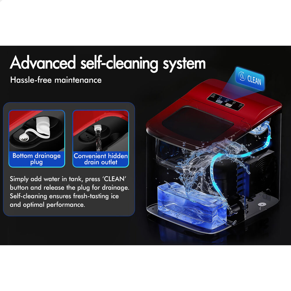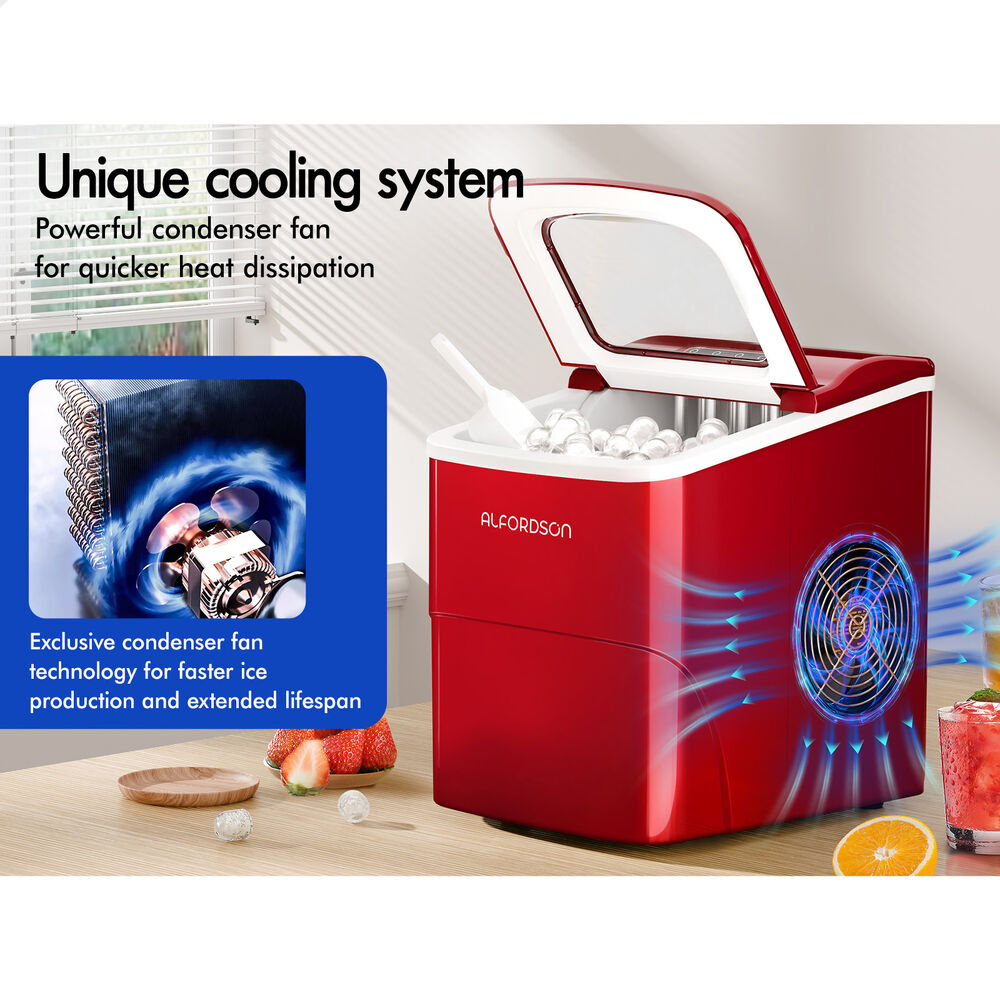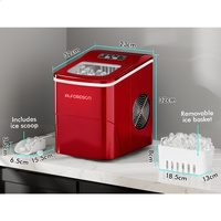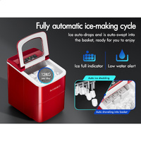 ALFORDSON Ice Maker Machine Commercial Portable 12kg Ice Cube Tray 2.2L Red