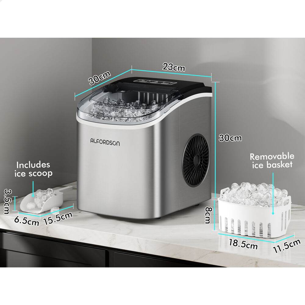 ALFORDSON Ice Maker Portable Machine Bar Countertop 12kg Ice Cube Tray Silver