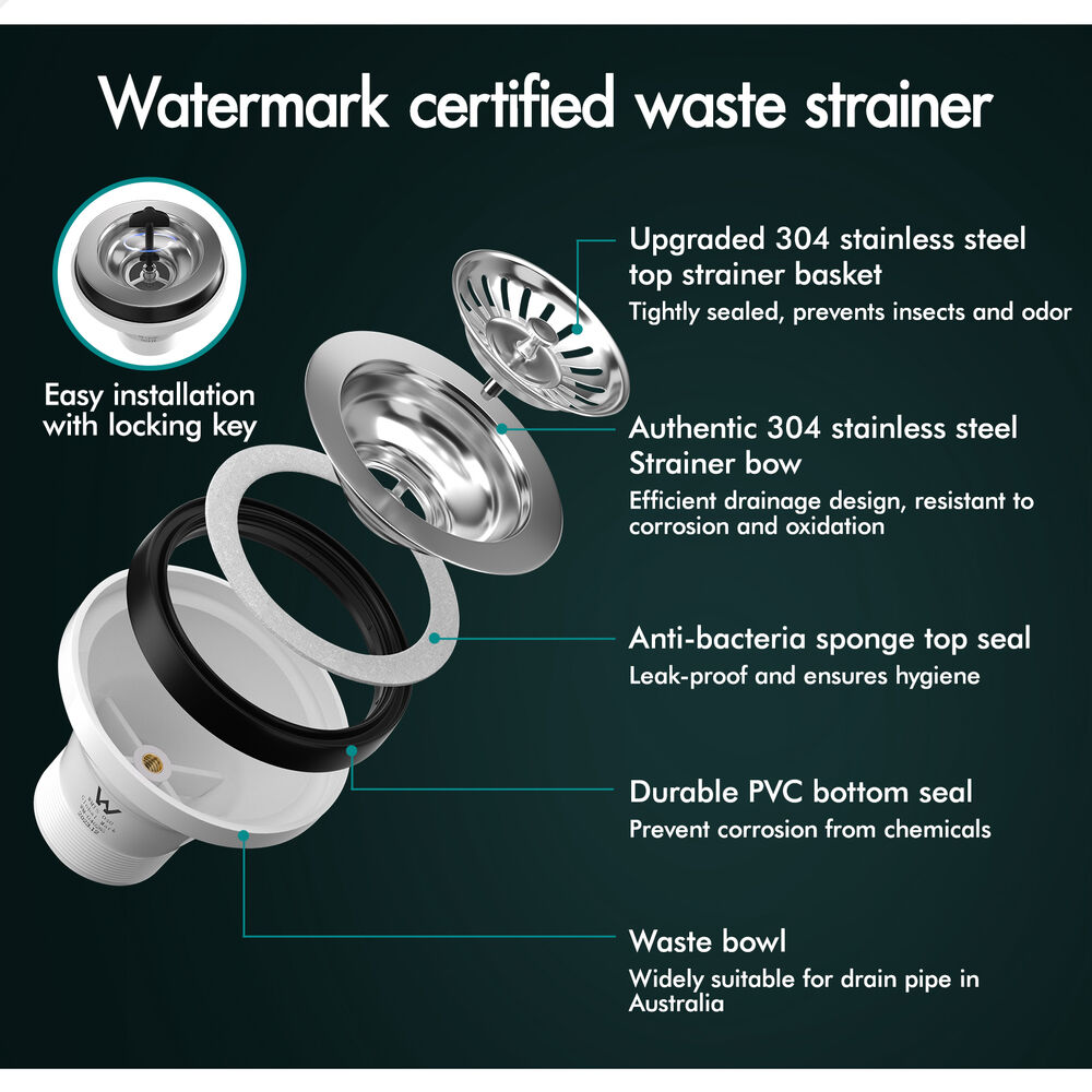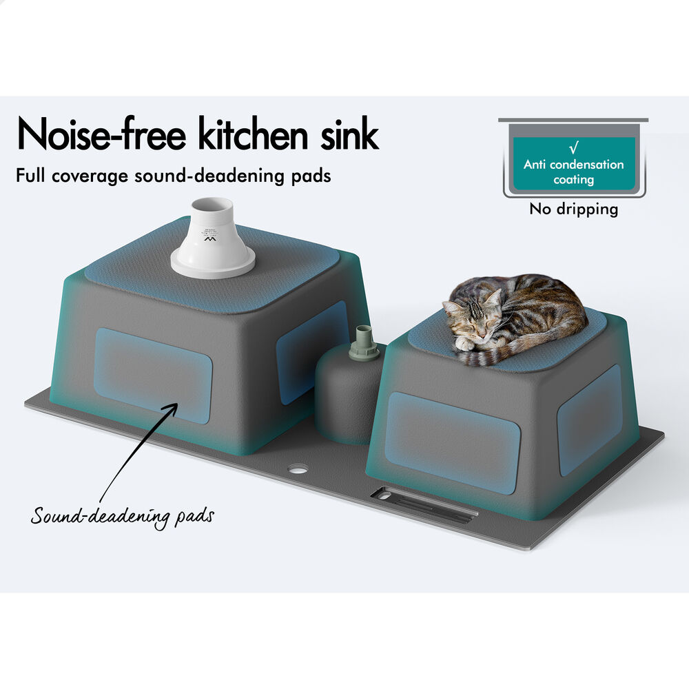 We also prioritize environmental considerations and user comfort. The sink includes eco-friendly anti-condensation coating, which reduces moisture accumulation underneath the basin. Additionally, five sound-deadening pads are strategically placed to minimize noise during use, ensuring a quieter kitchen environment.