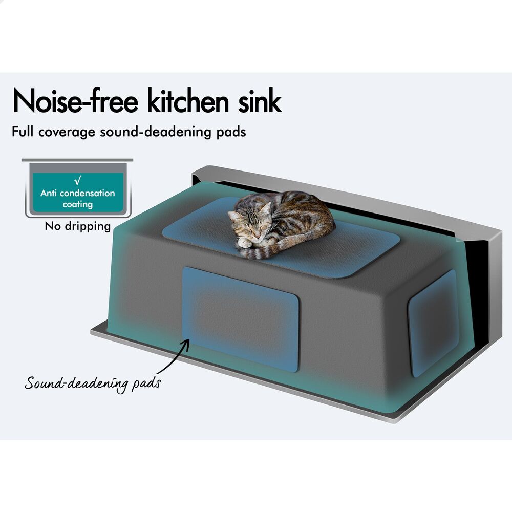We also prioritize environmental considerations and user comfort. The sink includes eco-friendly anti-condensation coating, which reduces moisture accumulation underneath the basin. Additionally, sound-deadening pads are strategically placed to minimize noise during use, ensuring a quieter kitchen environment.