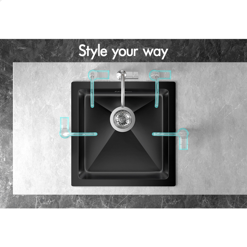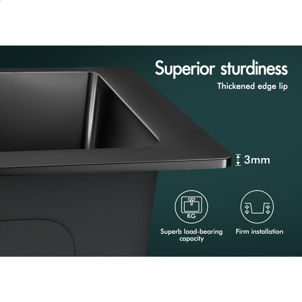ALFORDSON Kitchen Sink Stainless Steel Drop in Flush Under Mount 440X440MM Black