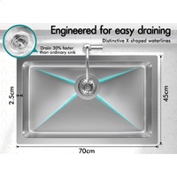 ALFORDSON Kitchen Sink Stainless Steel Drop in Flush Under Mount Bowl 700X450MM