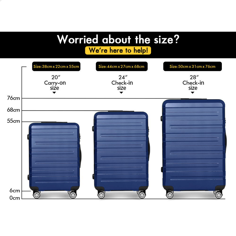 ALFORDSON Luggage 3PCS Set Suitcase Trolley TSA Carry on Hard Case Navy