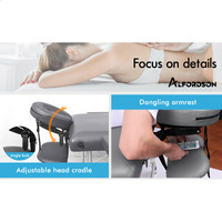 Coming with adjustable & removable head cradle, dangling armrests (best for mobile phone addict during massage), 10-height adjustable back, the Alfordson massage table fully suits your personalized positions while lying, lying on stomach and sitting. An elite in quality and design, your solution to true comfort.