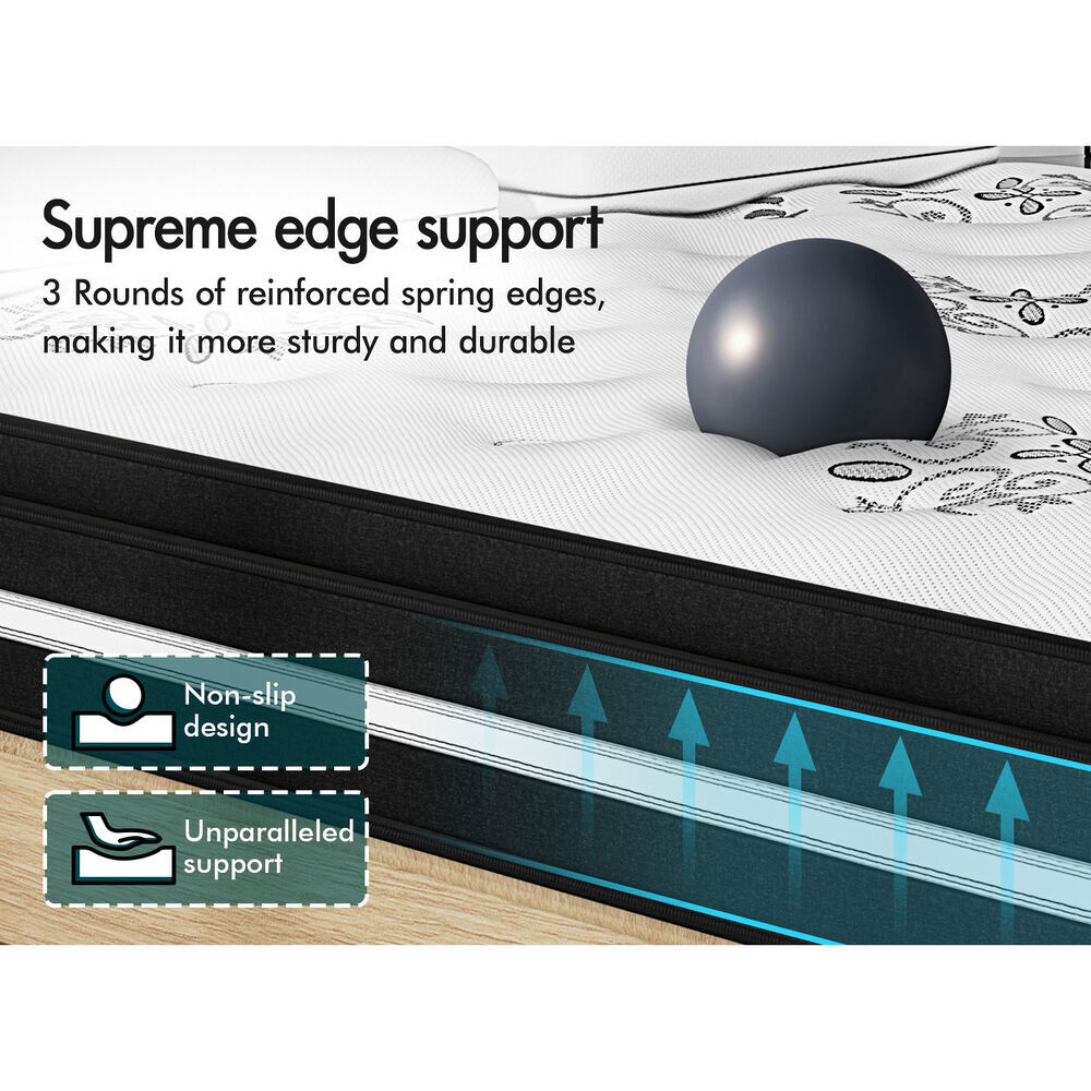 ALFORDSON Mattress 22CM King Single Bed EuroTop Bonnell Spring Medium Firm Foam