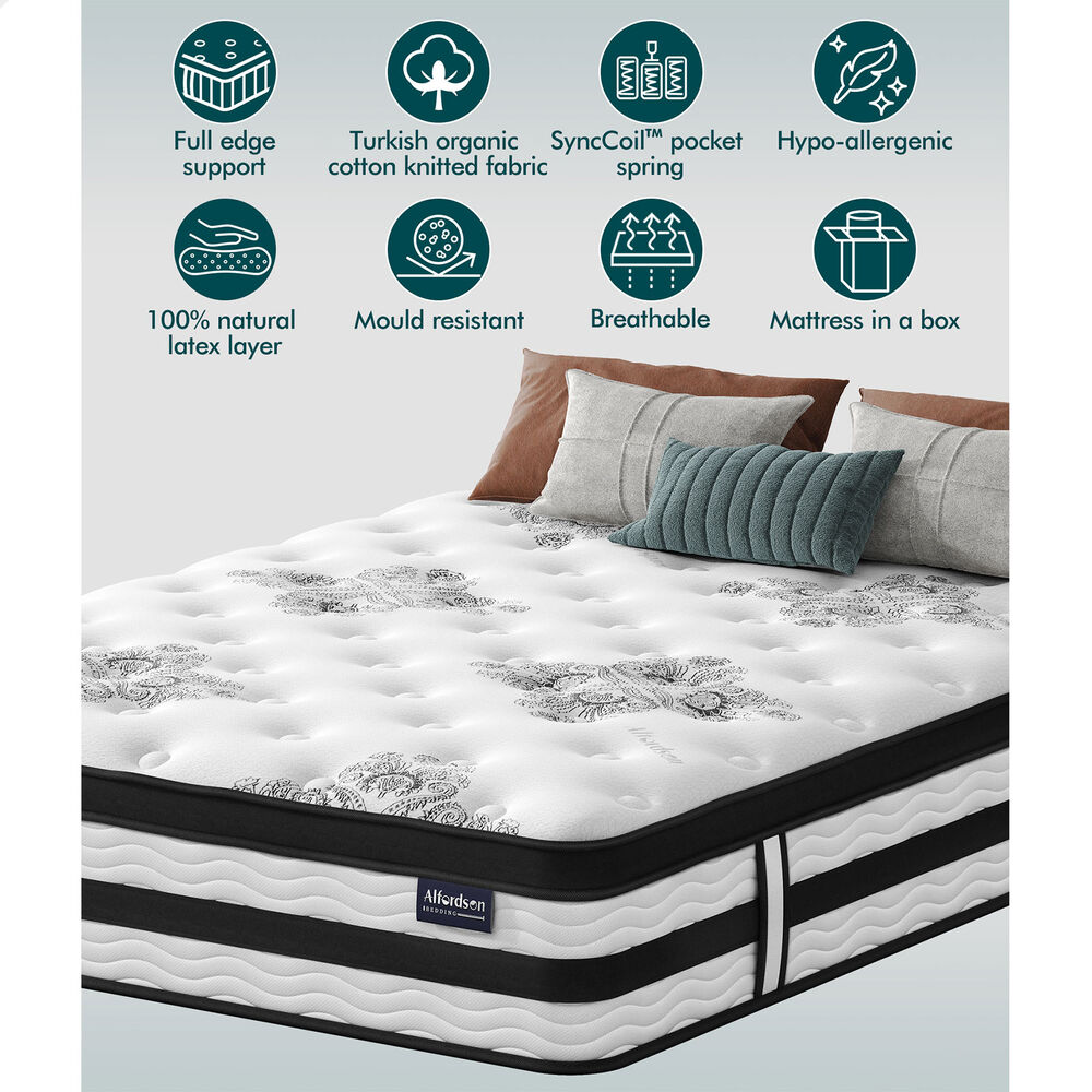 ALFORDSON Mattress 34CM Pocket Spring Single Bed Euro Top Latex 5 Zone Foam