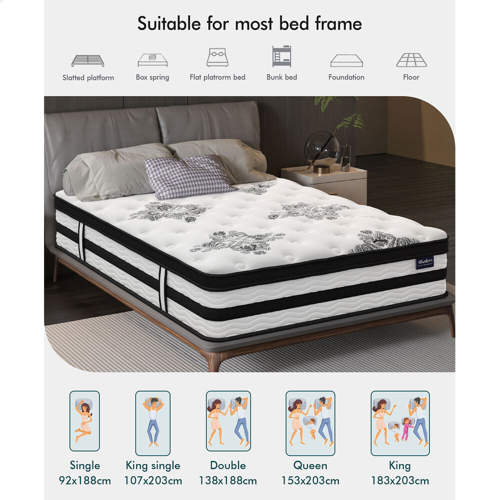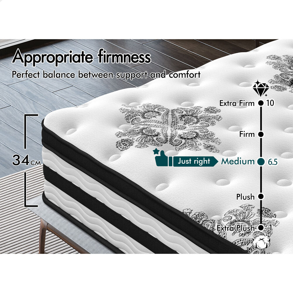 ALFORDSON Mattress Pocket Spring Queen Bed Euro Top Latex Foam 34CM Medium Firm