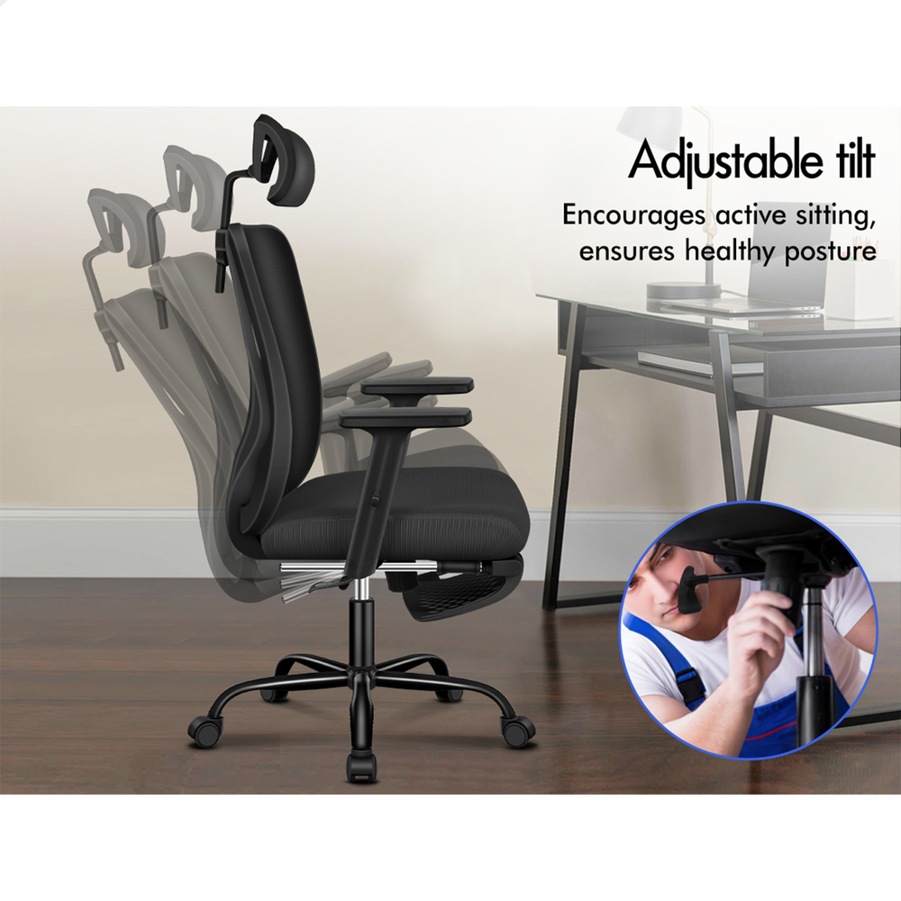 Combined with retractable footrest and flexible tilt adjustment, this mesh chair suits your personalized positions while sitting, sleeping or playing games. Adjusting the height of armrests to level with your desk helps effectively support your wrists and elbows, An elite in quality and design, your solution to true comfort.