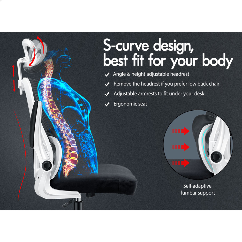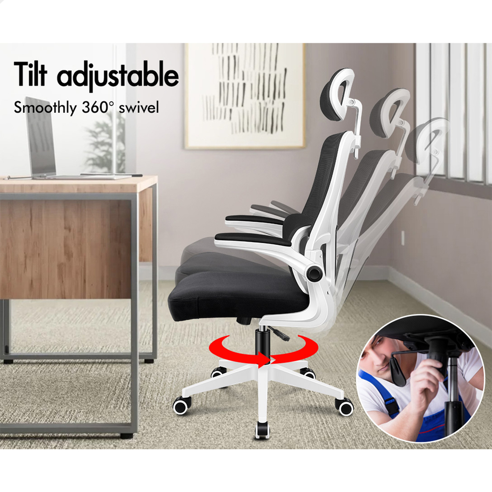 ALFORDSON Mesh Office Chair Executive Computer Fabric Seat Study Work Gaming [Model/ Colour: Nyles - Black & White]