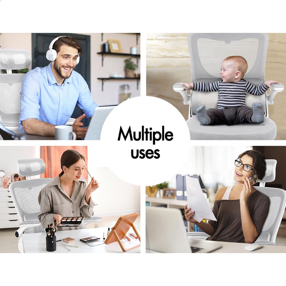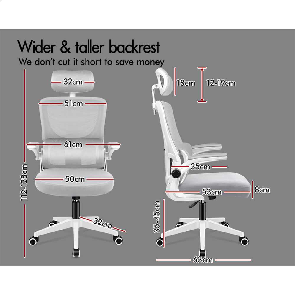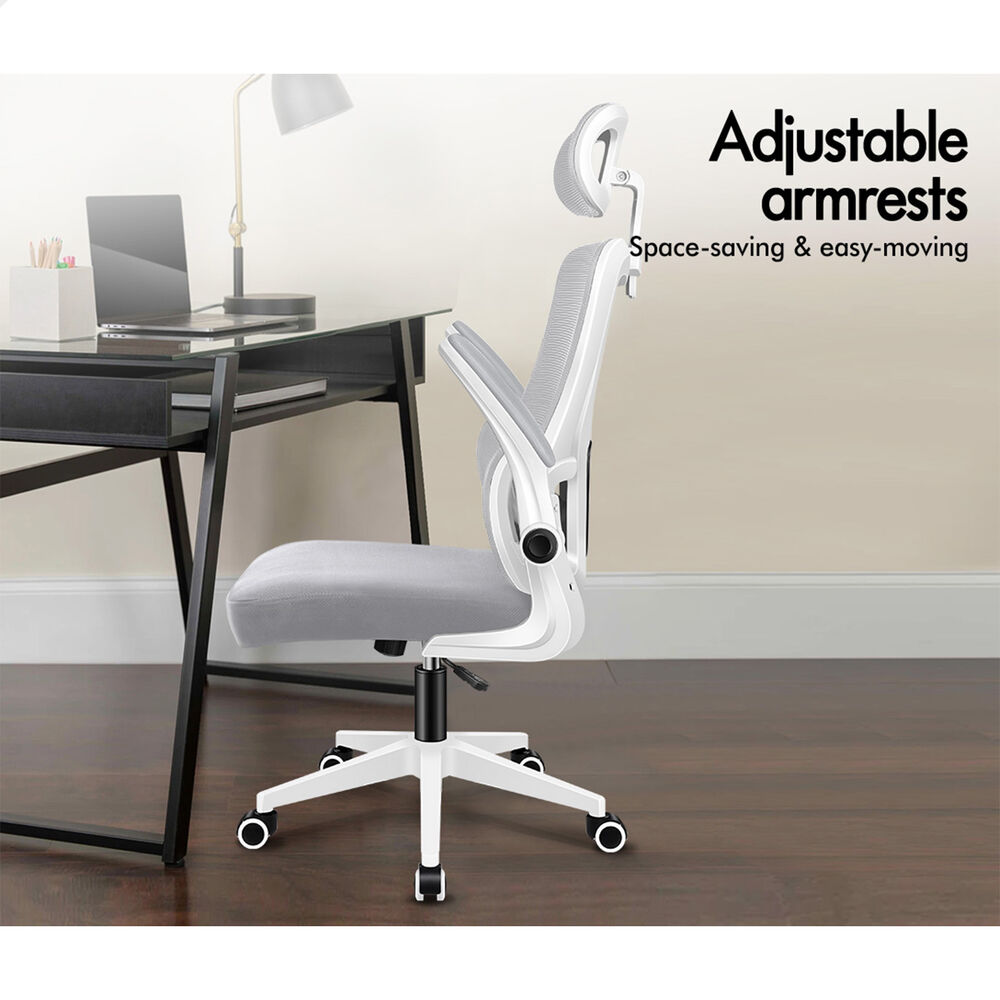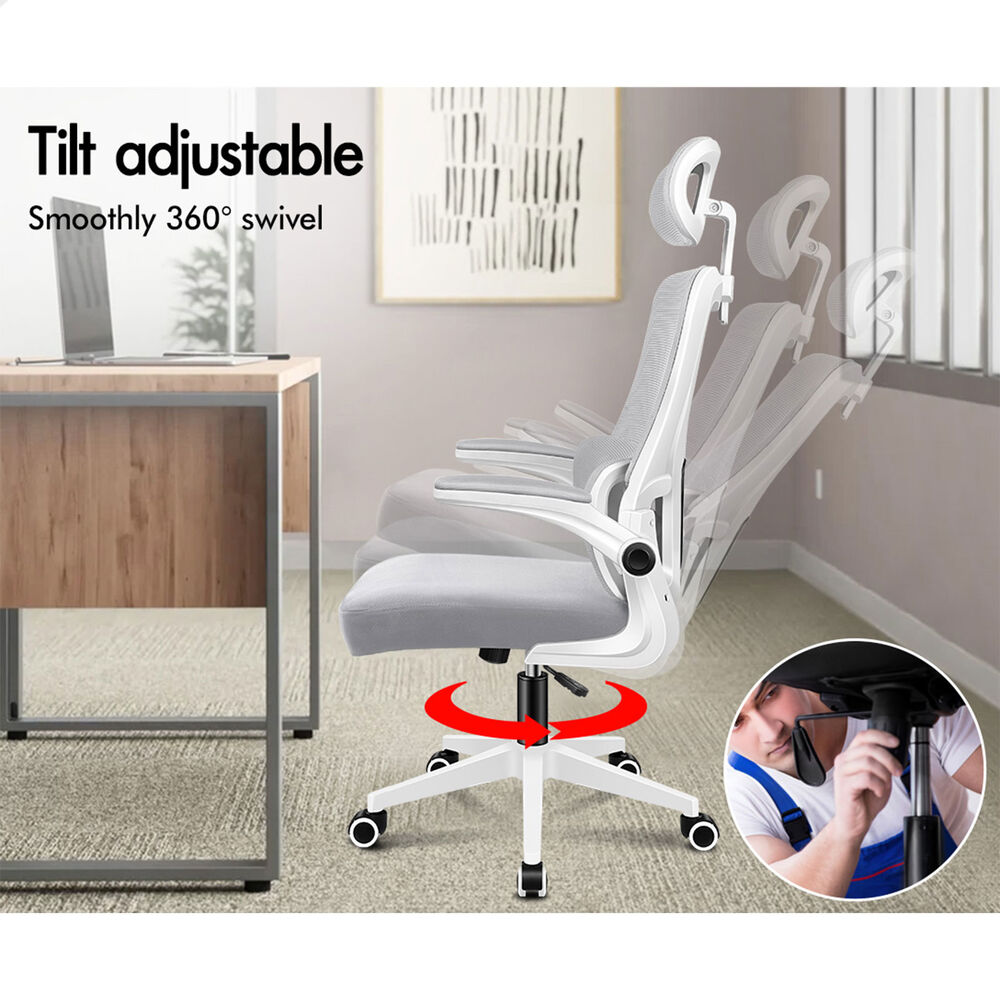 ALFORDSON Mesh Office Chair Executive Computer Tilt Fabric Seat Racing Work Grey & White