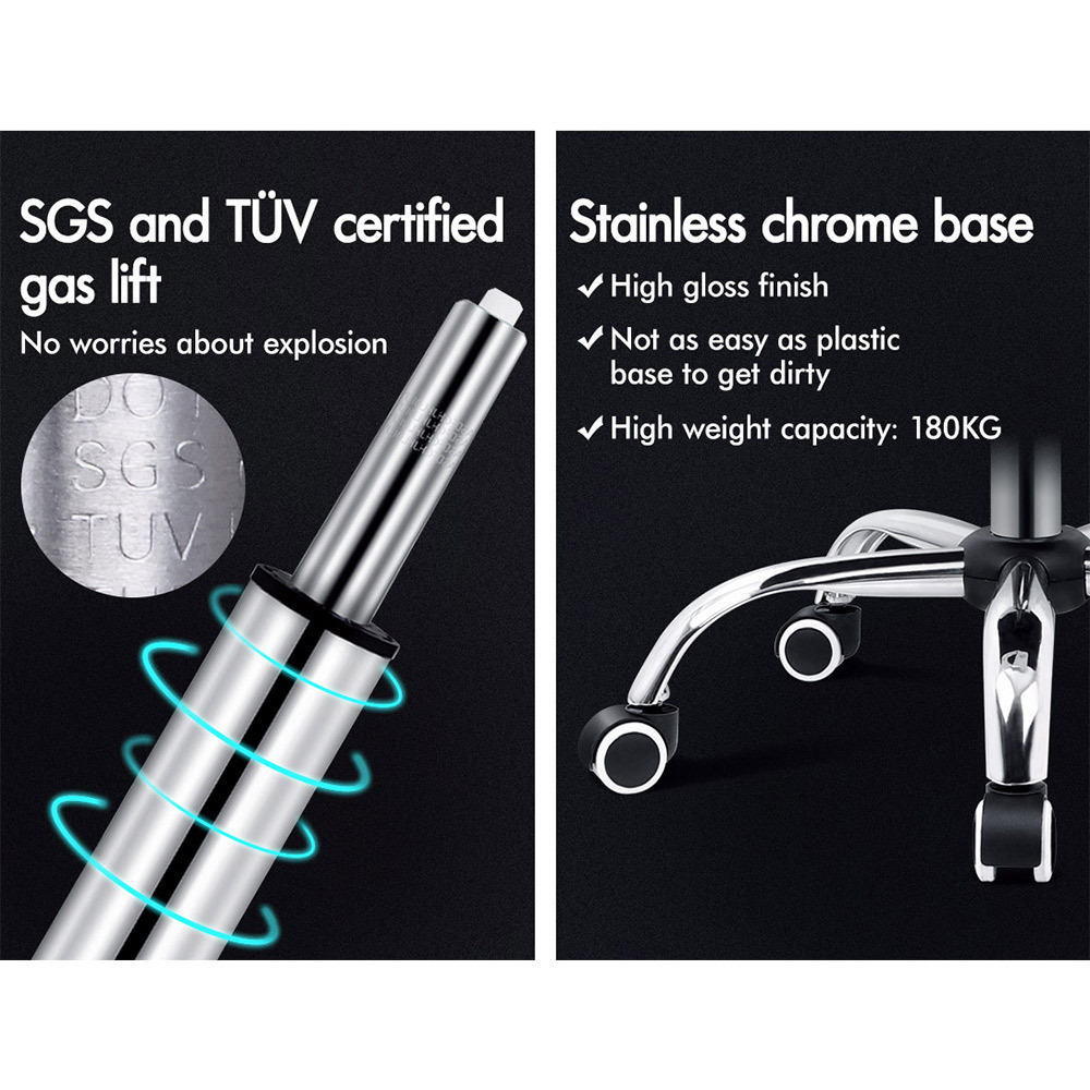 A stylish chrome base with TUV certified casters, Intertek approved mesh fabric, SGS approved Gas-Lift system and tilt function, delivering absolute five star luxury.
