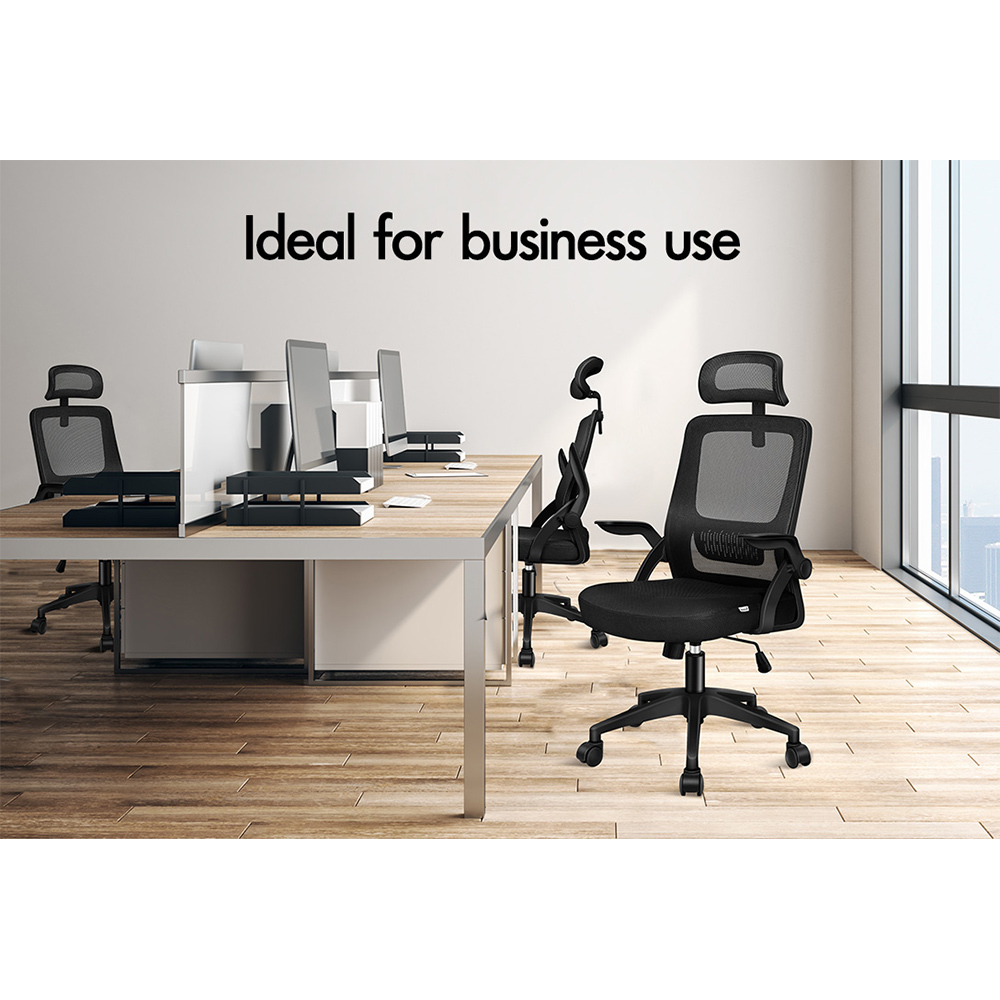 It features retractable armrests that fit under your desk as you wish. Upholstery crafted from premium mesh fabric ensures optimal durability.