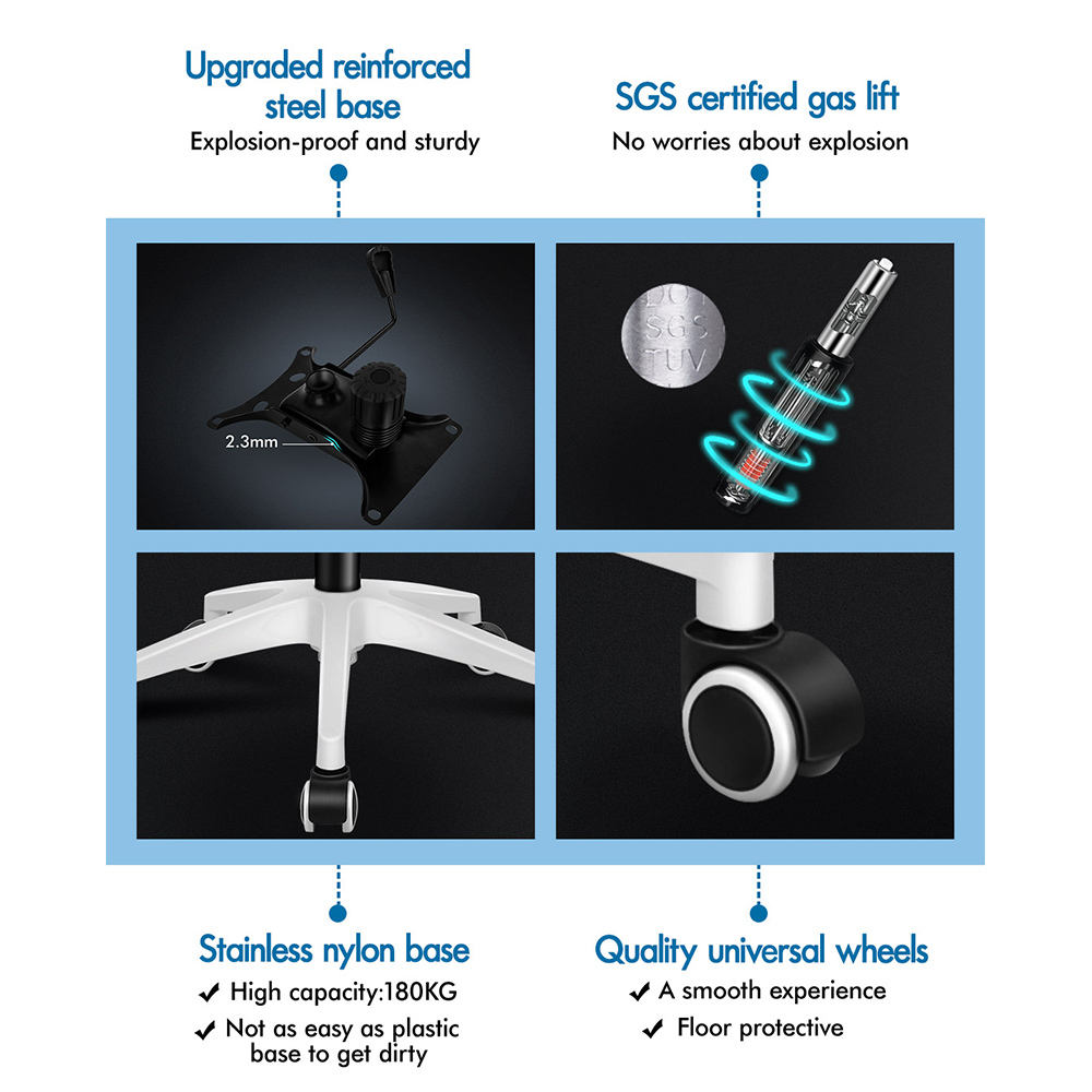 A stylish base with TUV certified casters, Intertek approved mesh fabric, SGS approved Gas-Lift system and tilt function, delivering absolute five star luxury.