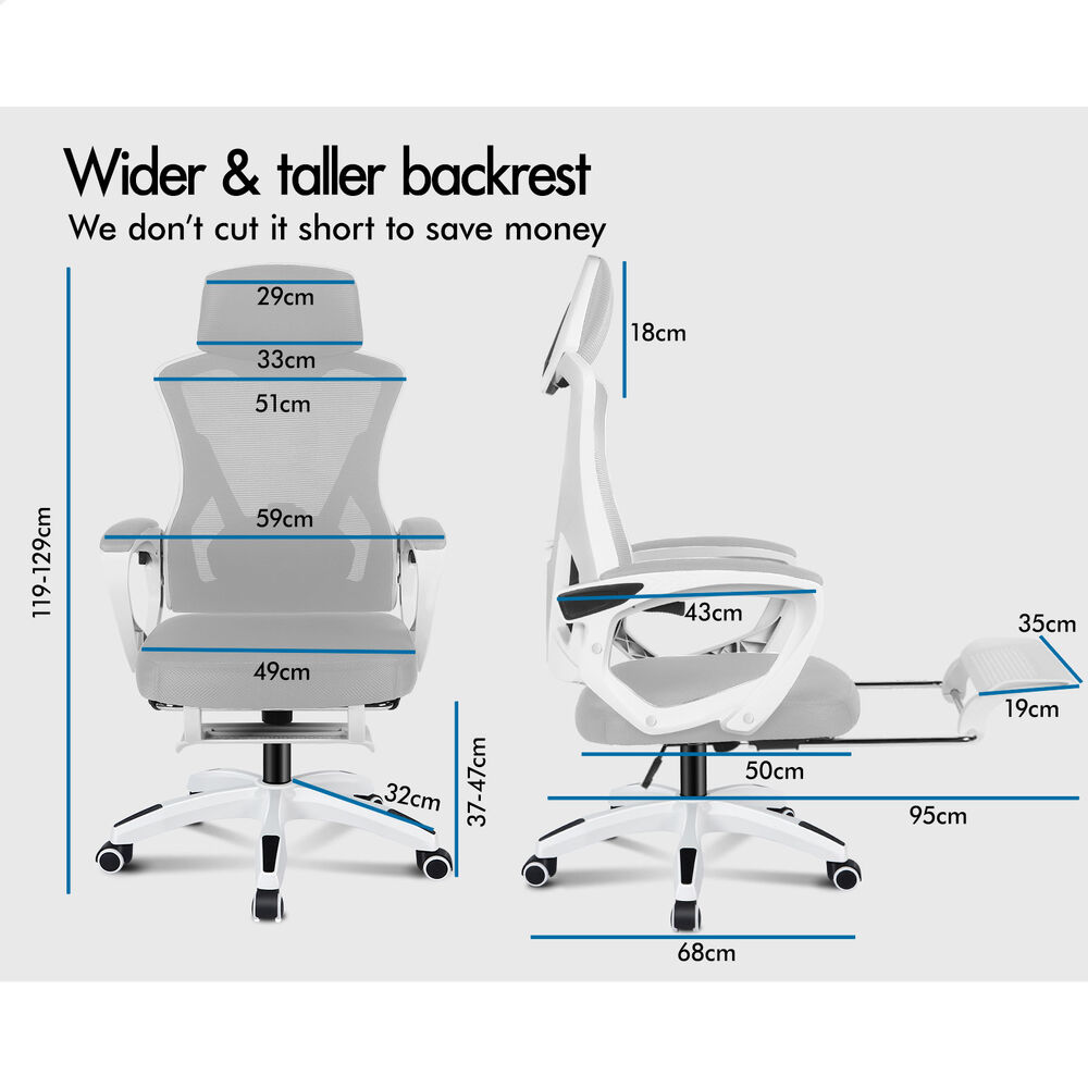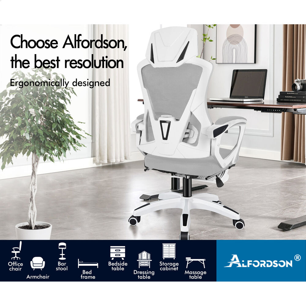 ALFORDSON Mesh Office Chair Gaming Executive Computer Recliner Study Work Seat White and Grey