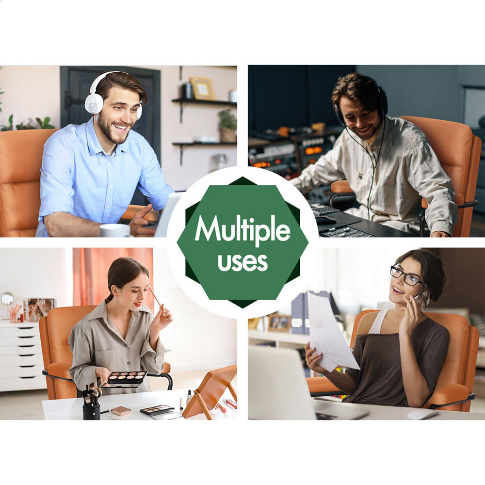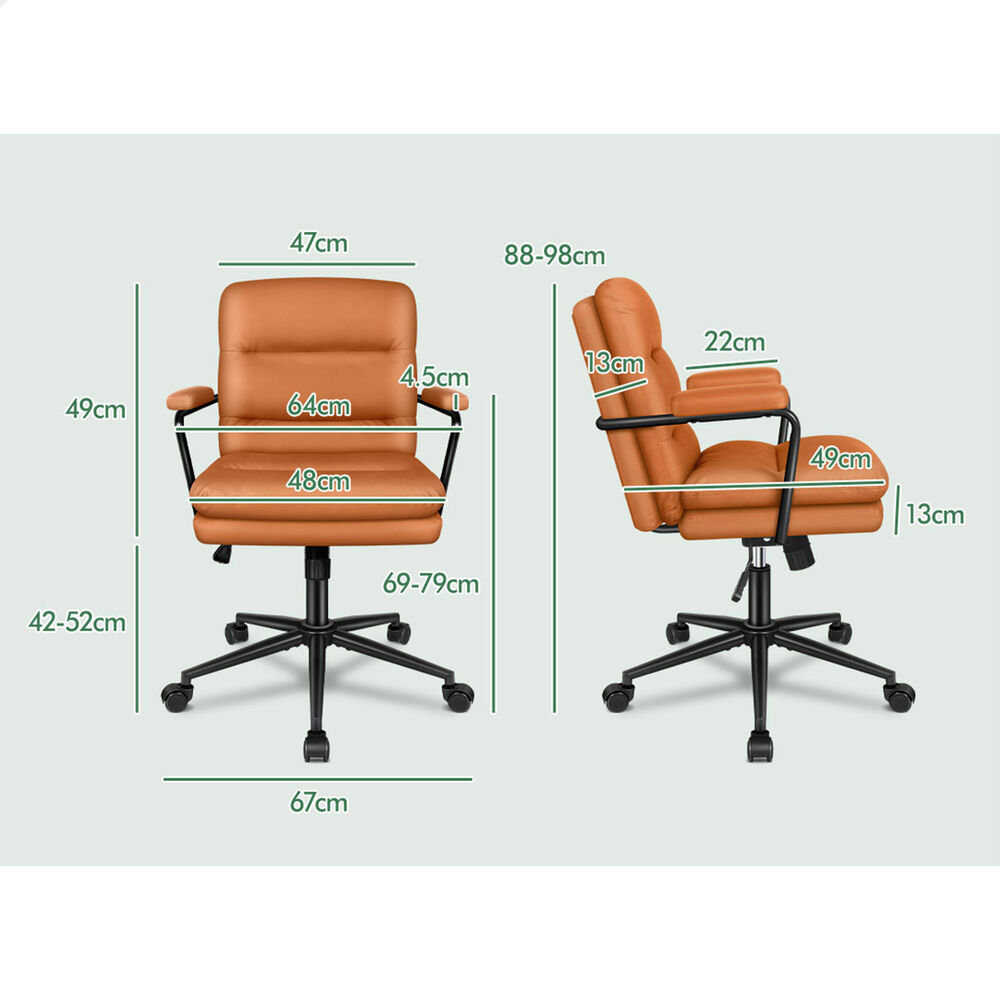 The modern concise design of this office swivel chair will soften any interior or decor you may currently have in your home or office. Upholstered in premium PU leather, the dual-layer seat and backrest are richly padded with high-resilience foam. The padded seat provides adequate support in the right places and infinite comfort whenever you want to rest and sit in the chair. Its ergonomic flared armrests design cradle your arms in a natural position, relieving unnecessary shoulder and arm strain and staying at your peak for long periods of time in optimal comfort.