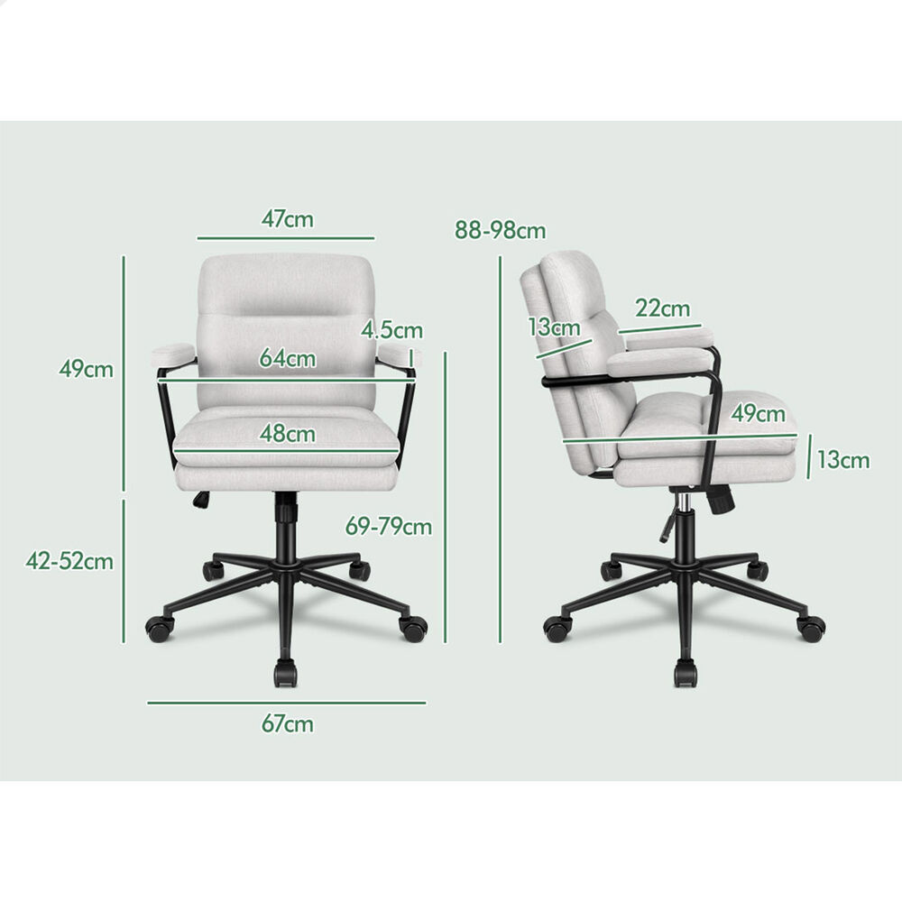 The modern concise design of this office swivel chair will soften any interior or decor you may currently have in your home or office. Upholstered in premium chenille fabric, the dual-layer seat and backrest are richly padded with high-resilience foam. The padded seat provides adequate support in the right places and infinite comfort whenever you want to rest and sit in the chair. Its ergonomic flared armrests design cradle your arms in a natural position, relieving unnecessary shoulder and arm strain and staying at your peak for long periods of time in optimal comfort.