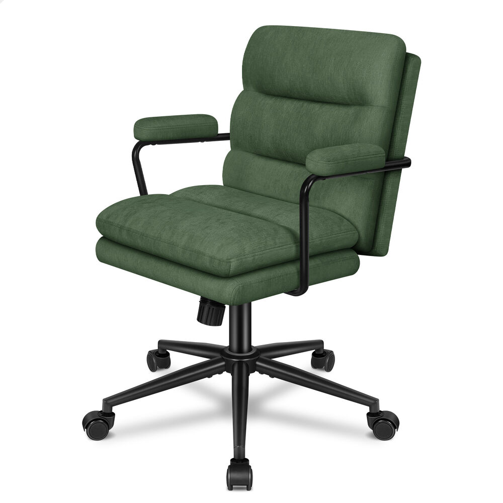 The modern concise design of this office swivel chair will soften any interior or decor you may currently have in your home or office. Upholstered in premium chenille fabric, the dual-layer seat and backrest are richly padded with high-resilience foam. The padded seat provides adequate support in the right places and infinite comfort whenever you want to rest and sit in the chair. Its ergonomic flared armrests design cradle your arms in a natural position, relieving unnecessary shoulder and arm strain and staying at your peak for long periods of time in optimal comfort.