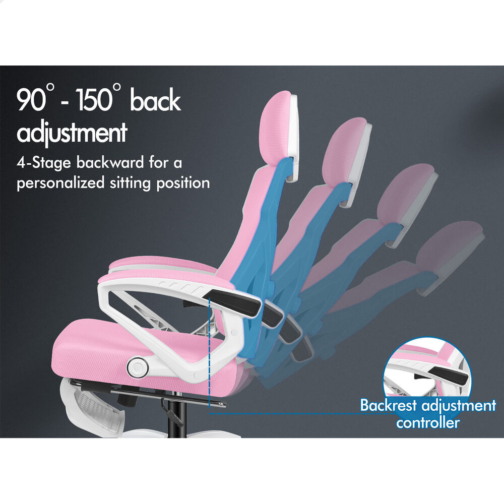 Featuring ergonomic high back design with built-in adjustable lumbar support, the knob-controlled stepless adjustment provides fine-tuning of the depth, and the 4-level height adjustment ensures precise height alignment, this computer chair suits perfectly with the curvature of your spine. Upholstery crafted from premium mesh fabric and generous foam paddings, the ergonomic office chair offers perfect support to make you relaxed, allowing you to work or play at your peak for long periods of time in optimal comfort.