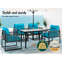 ALFORDSON Outdoor Dining Set Glass Table Lounge Chairs Patio Furniture Wicker