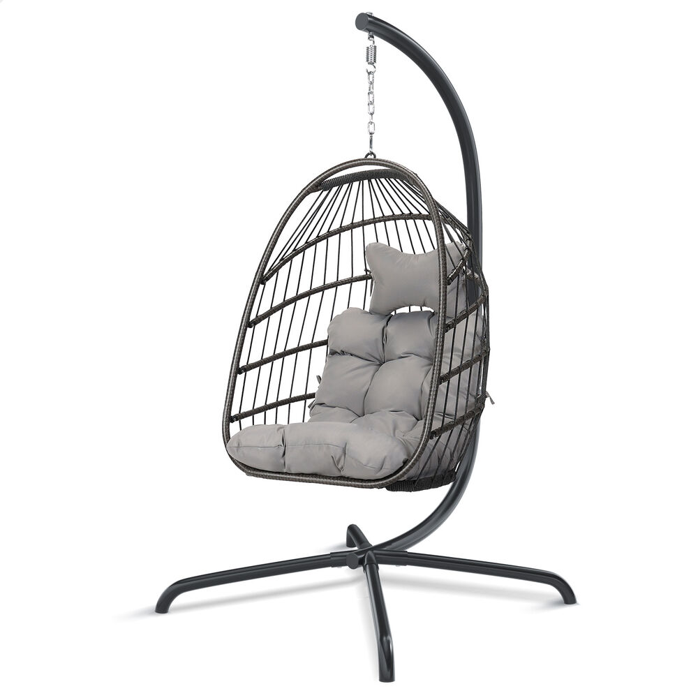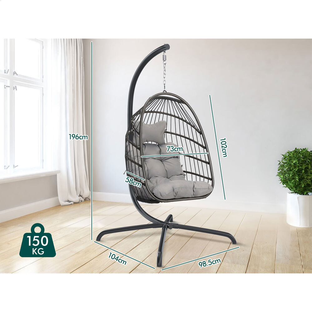 ALFORDSON Outdoor Egg Swing Chair Wicker Rattan Pod Foldable Seat Light Grey