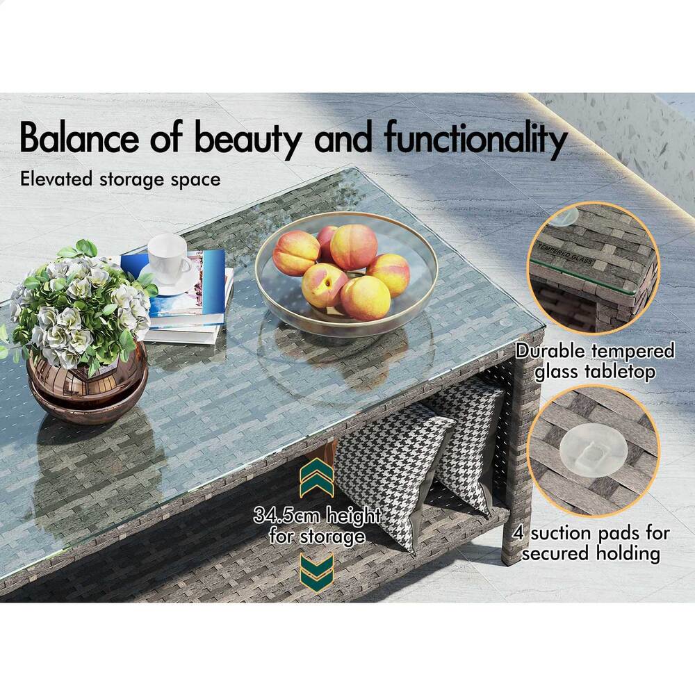 Exclusive storage space - Unlike many other products, our coffee table in the set features unique storage space. With the 30cm elevated storage space, it can be used to store books, pillows, or other items you may want to keep within reach while relaxing outside.