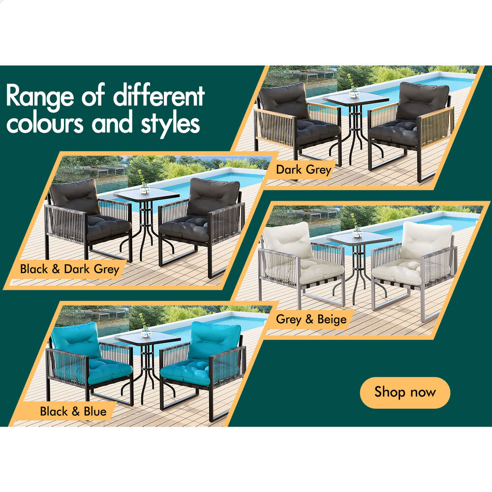 Who wants to host a party indoor whilst the sky is blue outside, or have friends over for coffee in the kitchen whilst the sun shines? Spending time outside in the fresh air not only reduces stress, but also improves our mood and sharpens our focus. With our ALFORDSON® Outdoor Table and Chair Set, it will surely bring comfort and relaxing time to you and your family.