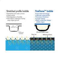 FineDome™ reinforced bubble design – Optimized for 600 microns thickness, our unique moulding technique enables the polyethylene bubble layer to be formed in a profile that is consistent in thickness for greater strength and durability. These bubbles resist crushing and bursting, maximizing insulation efficiency while adding an extra layer of protection against wear and tear.