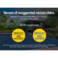 Genuine 600 microns construction – Crafted from premium low density polyethylene (LDPE), this cover is 50% thicker than 400 microns pool covers available on the market. The upgraded material boosts toughness by 40%, delivering exceptional tear and puncture resistance. What's more, this premium LDPE is a thermoplastic that withstands continuous temperatures up to 80°C, perfectly suited to stand up to the intense heat of Australian summers. It can withstand accidental impacts from twigs or pebbles without ripping, ensuring long-lasting durability even in harsh outdoor conditions.