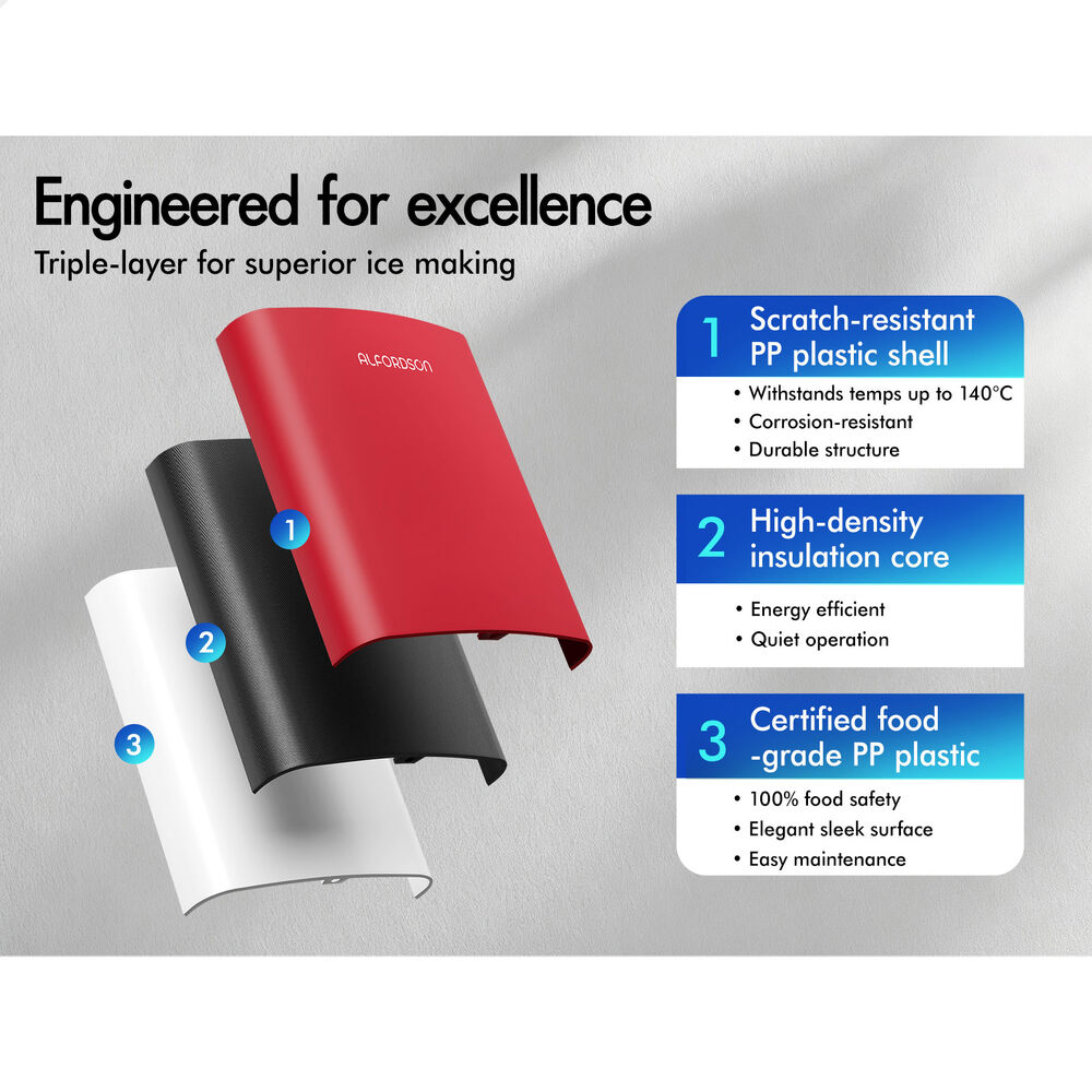 Engineered for excellence & durability - Built to last, this ice maker features unique condenser fan for quicker heat dissipation, resulting in faster ice production and an extended machine lifep. The triple-layer shell structure ensures energy-efficient operation and ice that stays frozen longer.