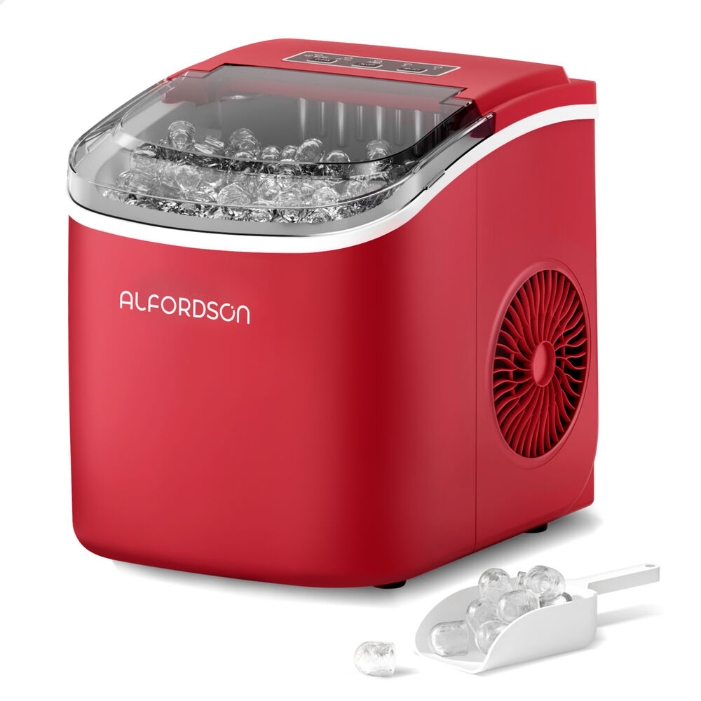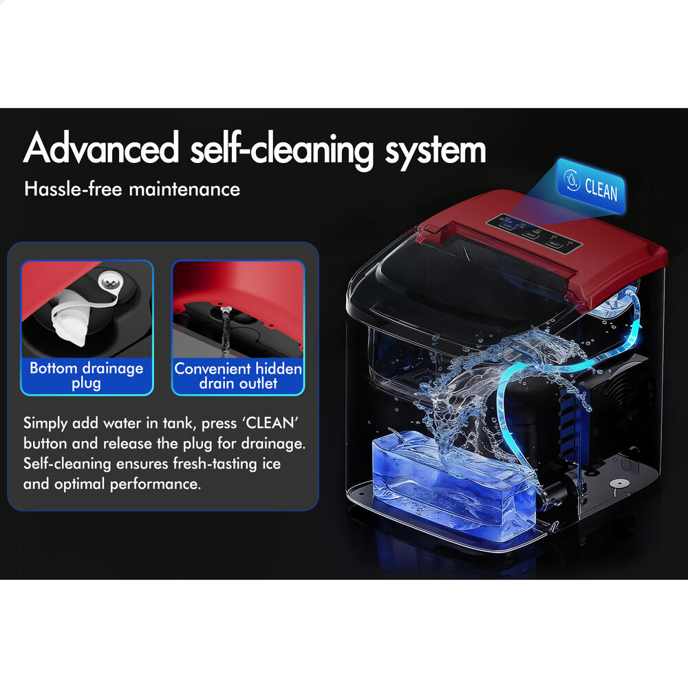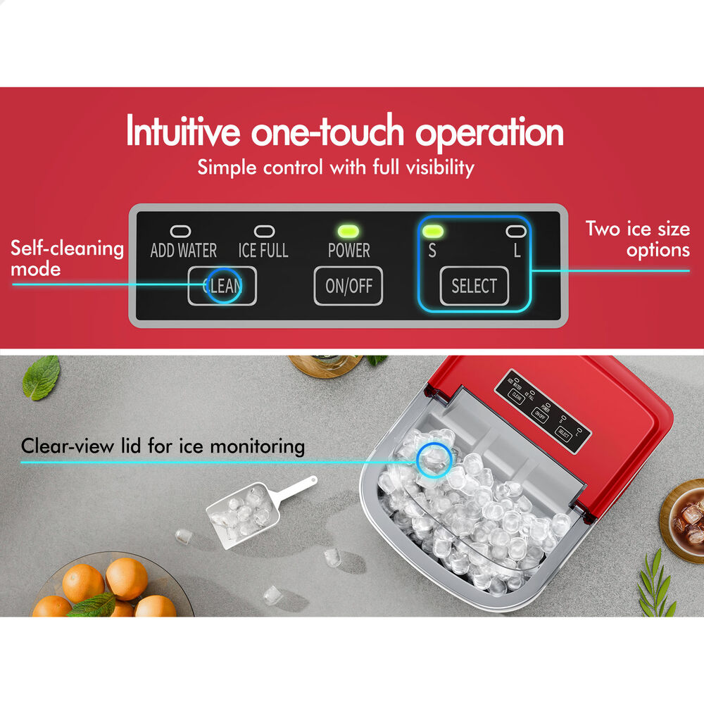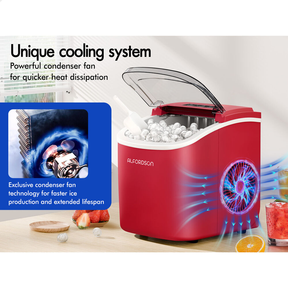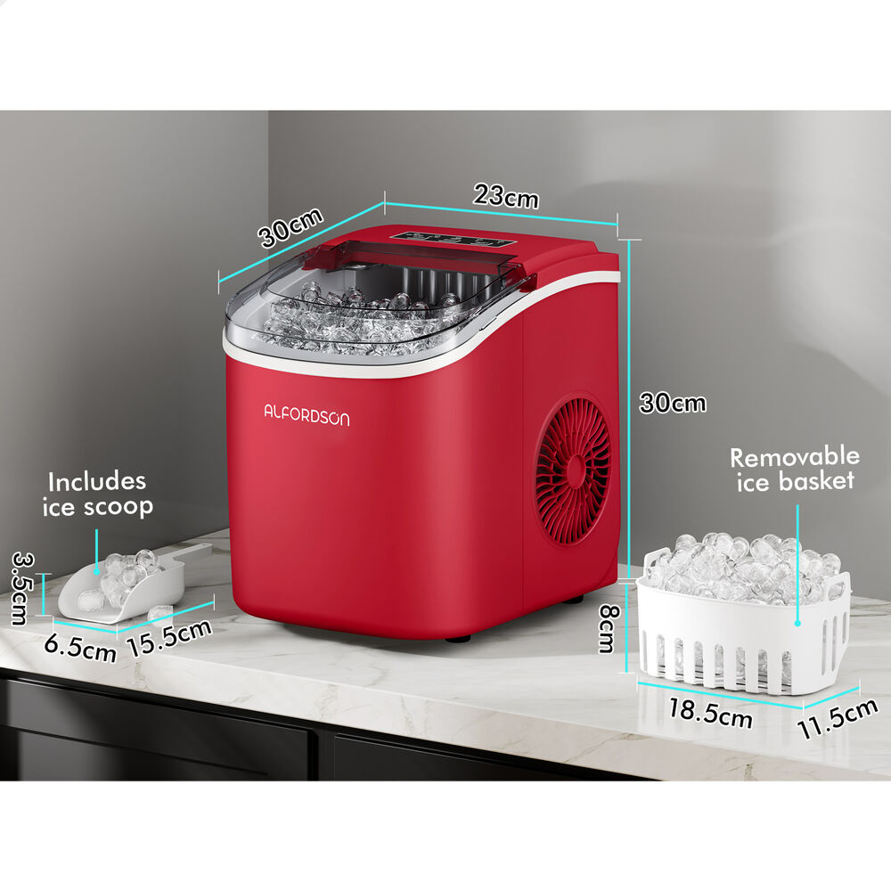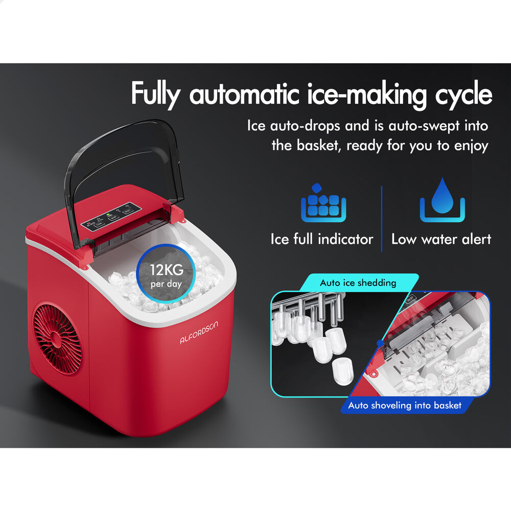 ALFORDSON Portable Ice Maker Machine Countertop 12kg Ice Cube Tray Red