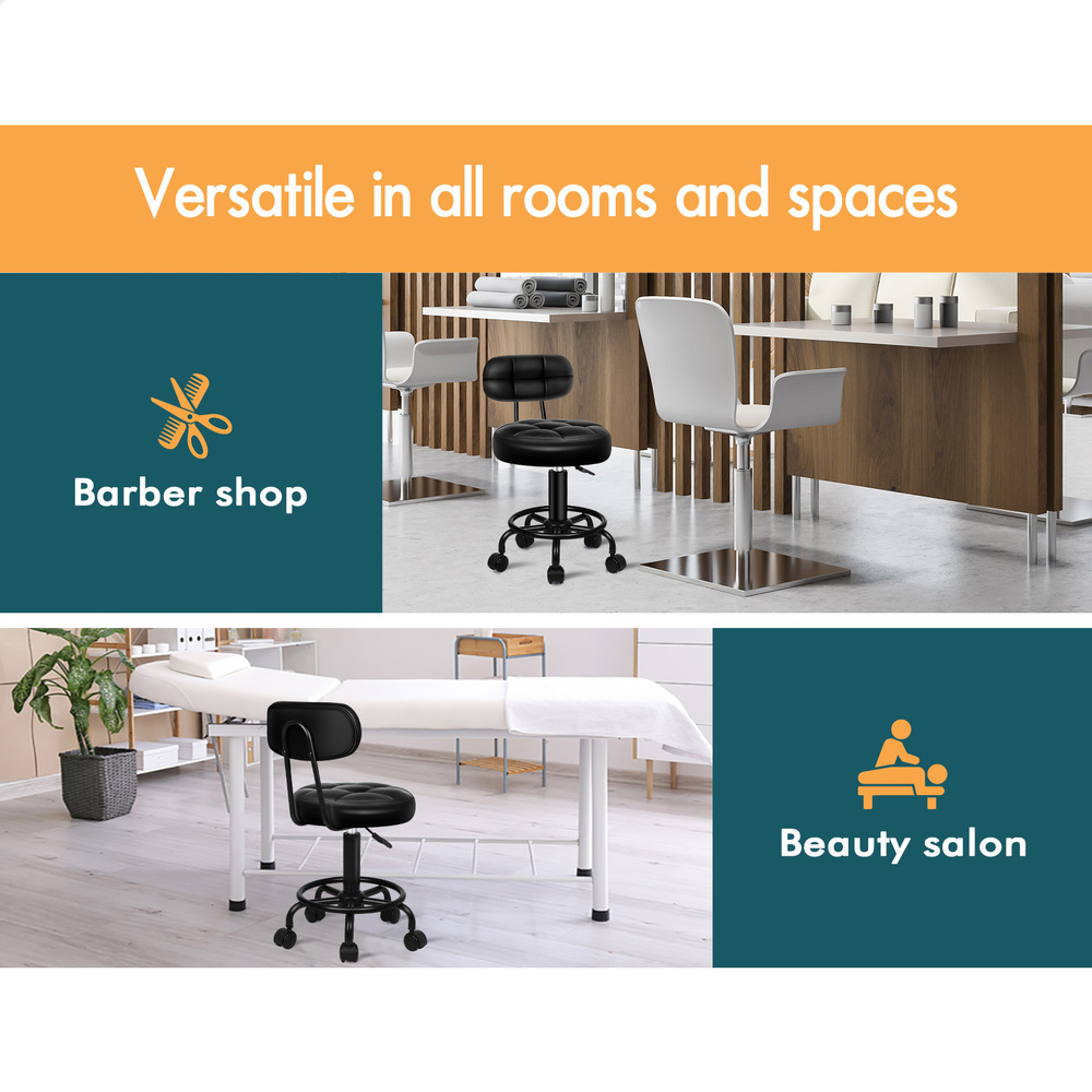 ALFORDSON Salon Stool Backrest Swivel Barber Hair Dress Chair Riley All Black