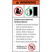 (b) NEVER allow children to stand, climb or hang on drawers, doors, or shelves;