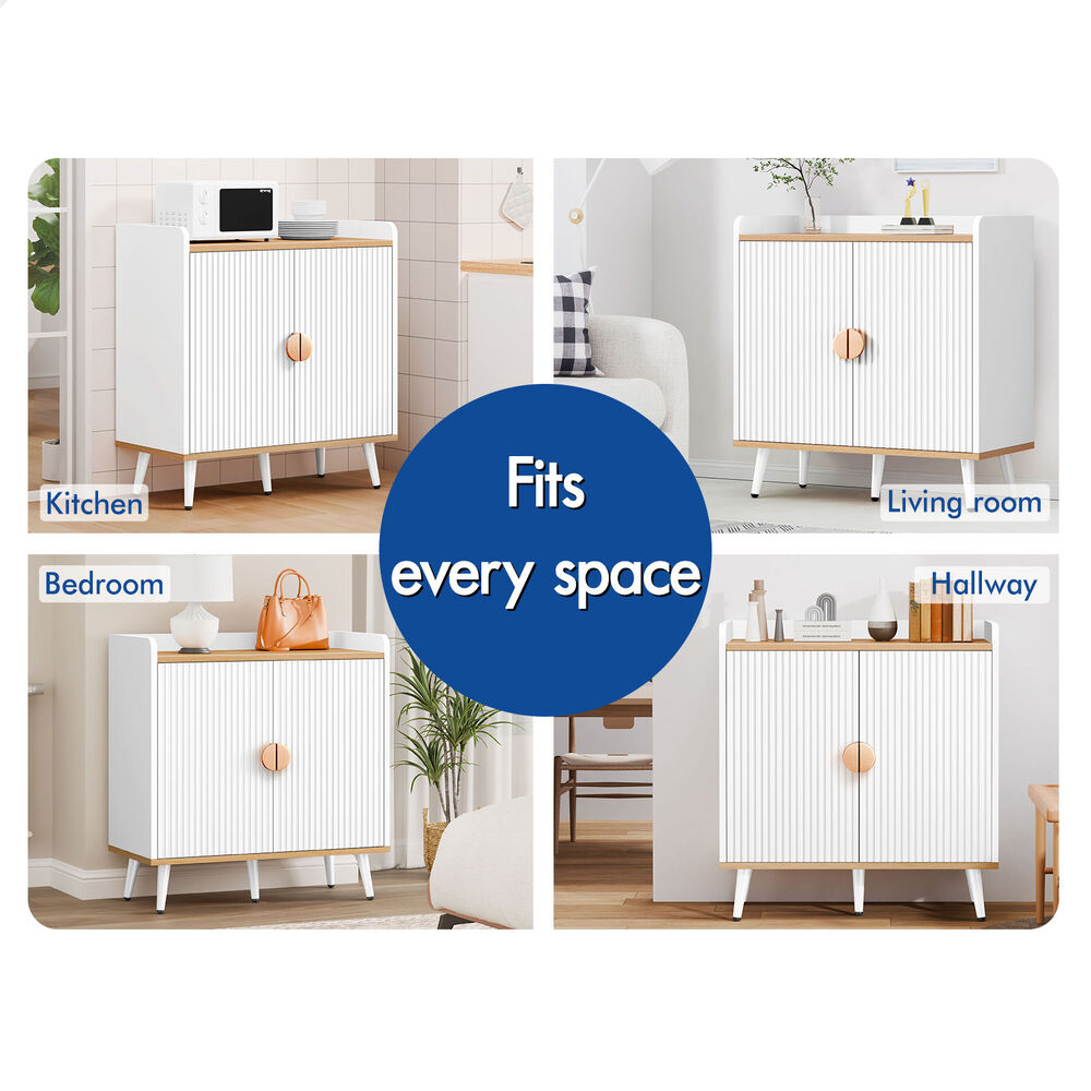 Versatile Design for Any Space - Featuring a two-tone color scheme and unique fluted doors, this sideboard seamlessly blends with modern and rustic interiors. Its versatile design allows it to complement a variety of décor styles, making it a perfect fit for any room.