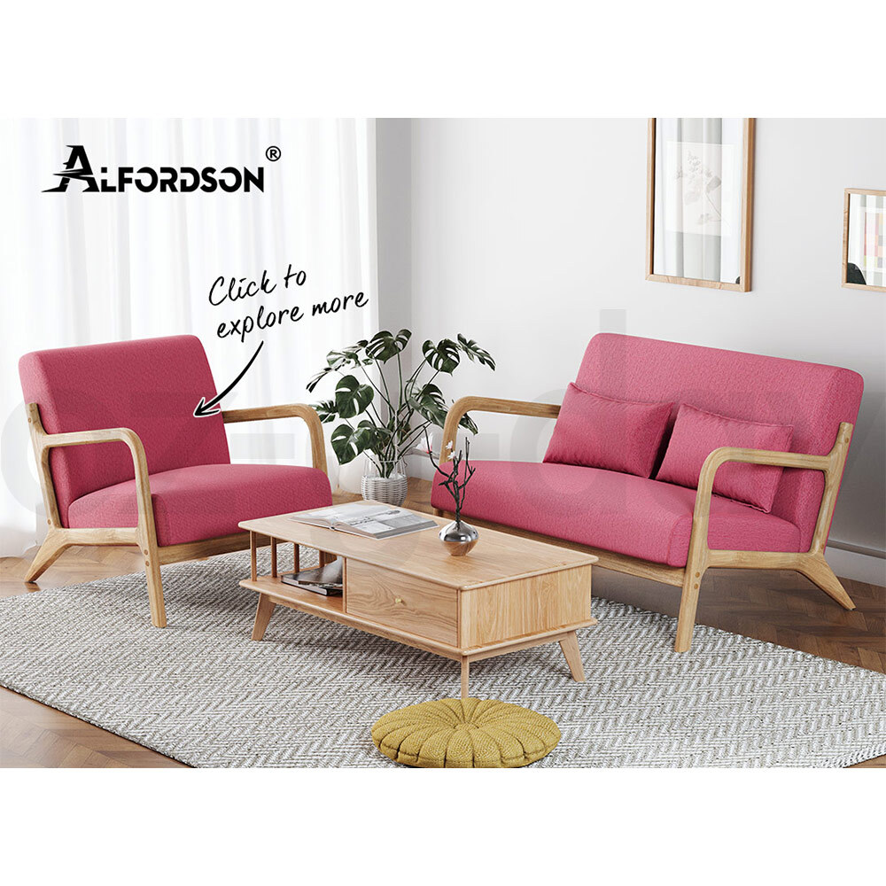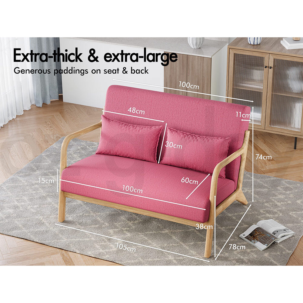 ALFORDSON Wooden Armchair Fabric Lounge Chair Accent 2 Seater Sofa Couch Pink