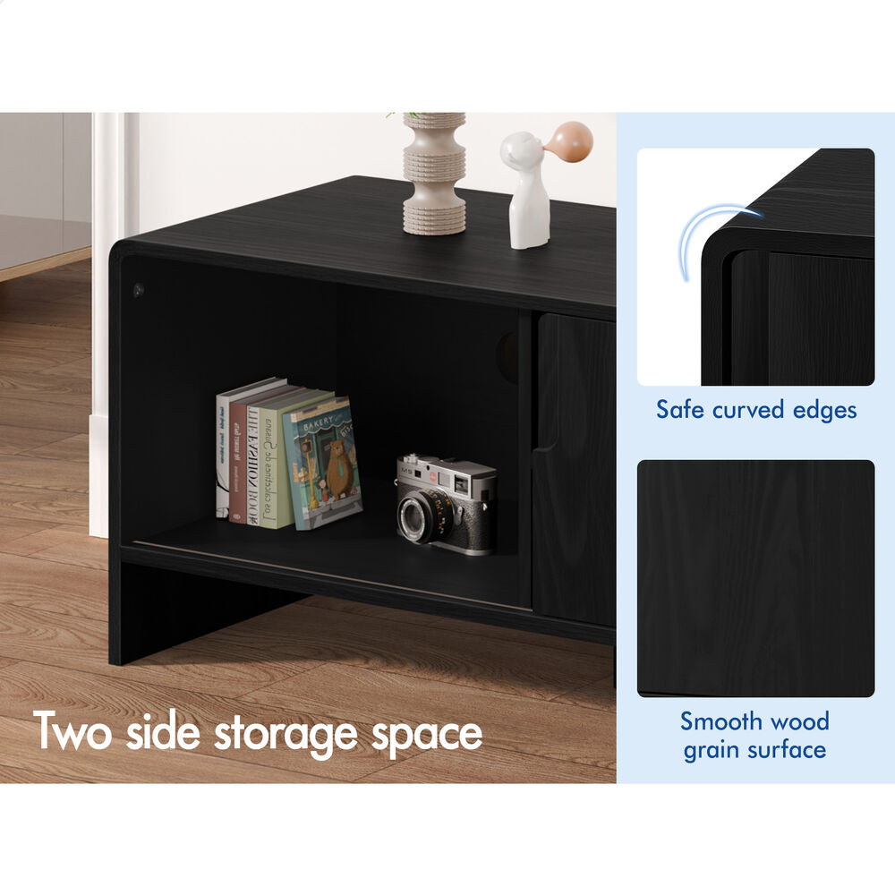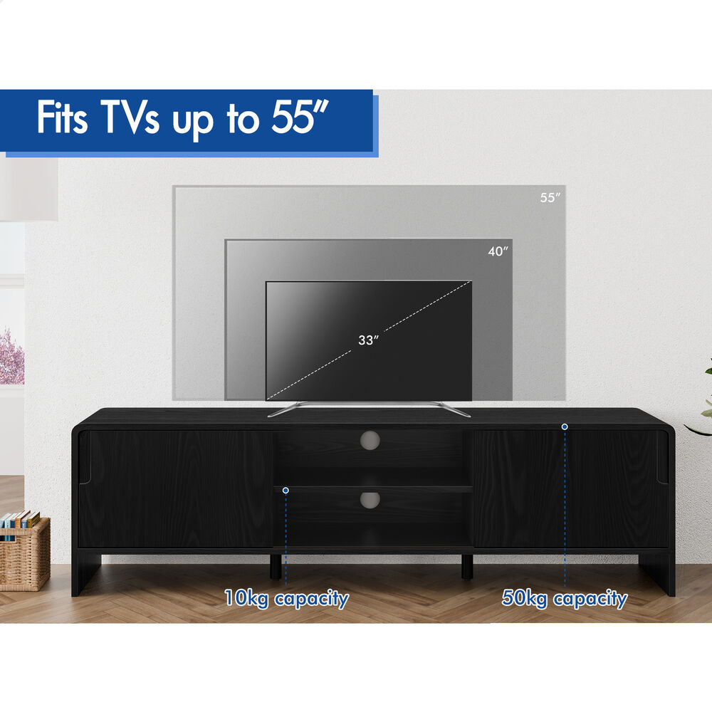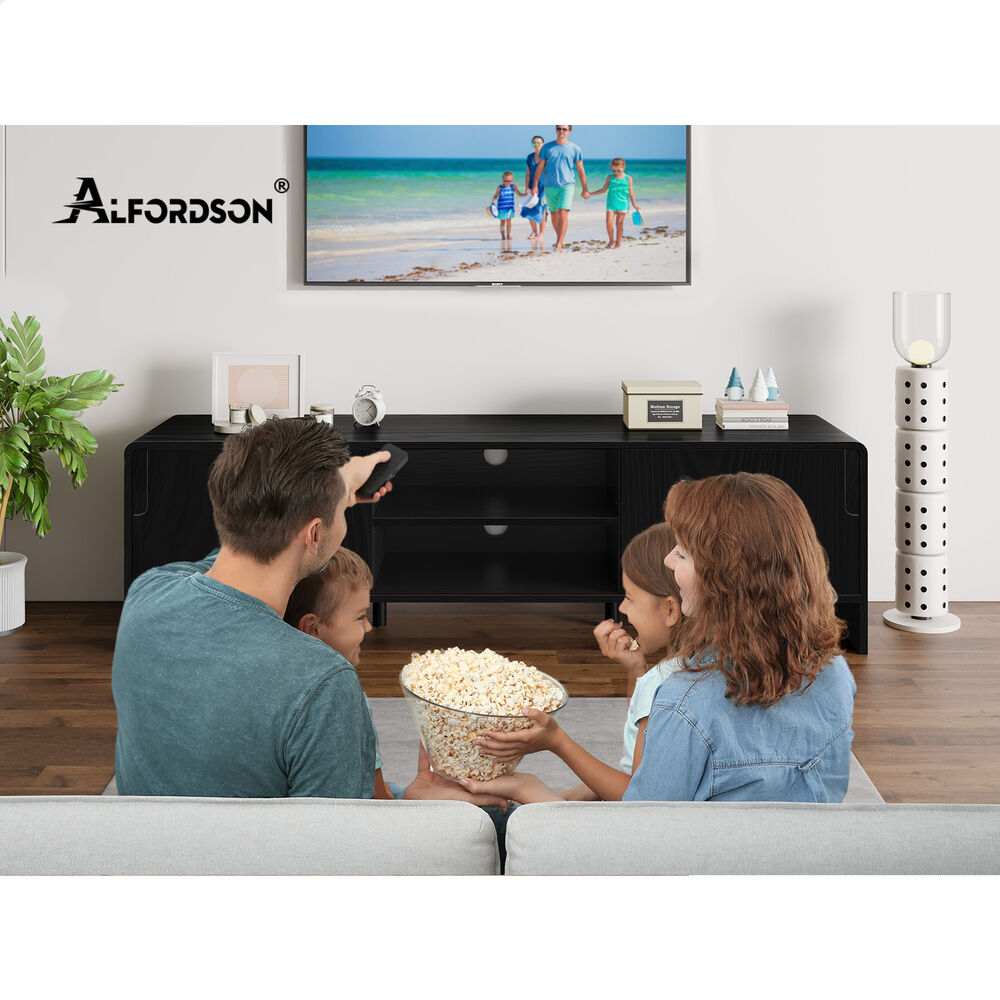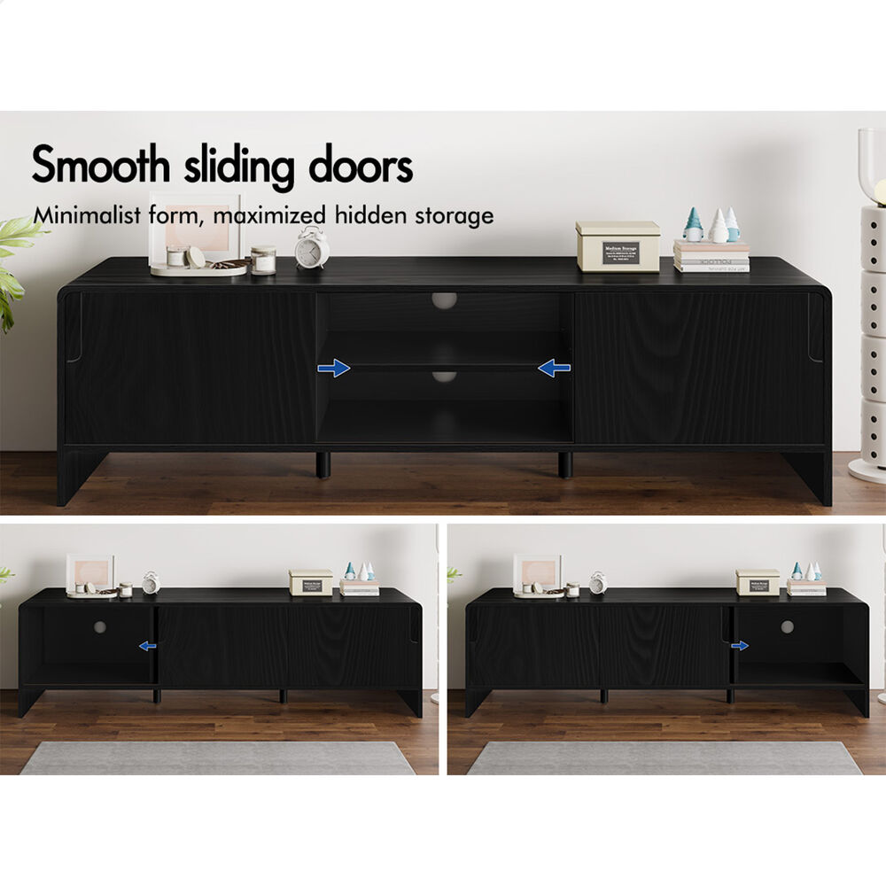 ALFORDSON TV Cabinet Entertainment Unit 150cm Storage Sliding Doors Black Shelf