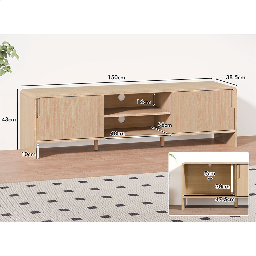 ALFORDSON TV Cabinet Entertainment Unit Stand 150cm Storage Sliding Doors Wood