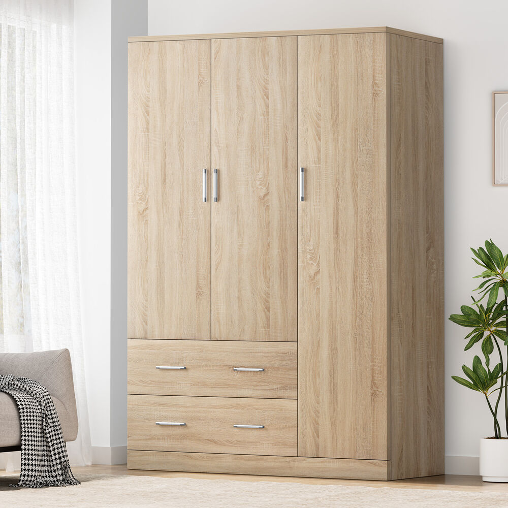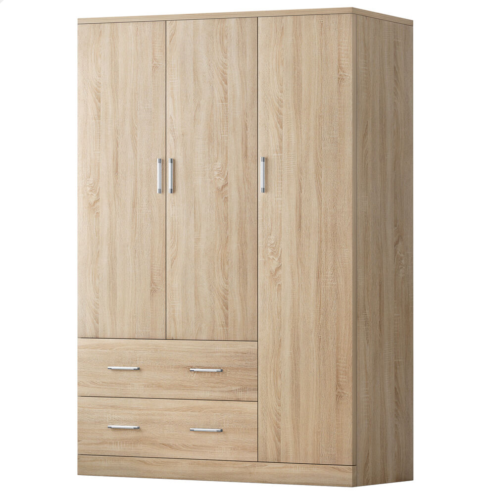 Ample Storage - As a well-organized wardrobe, it provides sufficient space with a large 3-door cabinet and 2 drawers to keep your room tidy and free of clutter. Featuring 2 hanging rails, the wardrobe is perfectly convenient for storing longer clothes, like dresses, coats and shirts. The smaller concealed drawers at the bottom are ideal for your undergarments, socks and other accessories.
