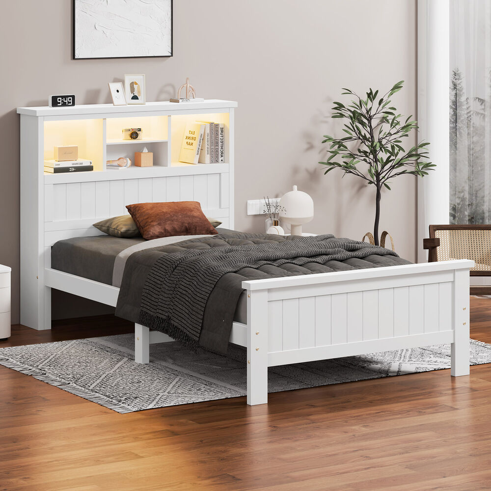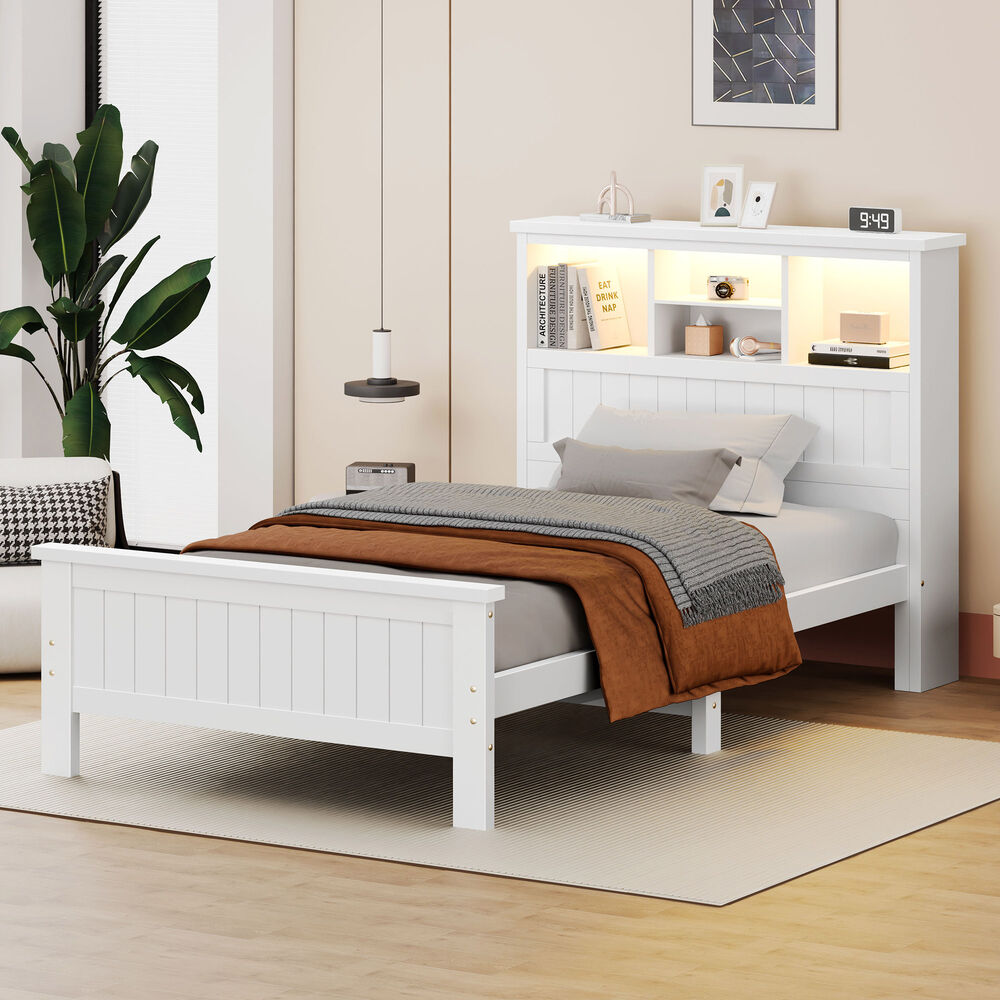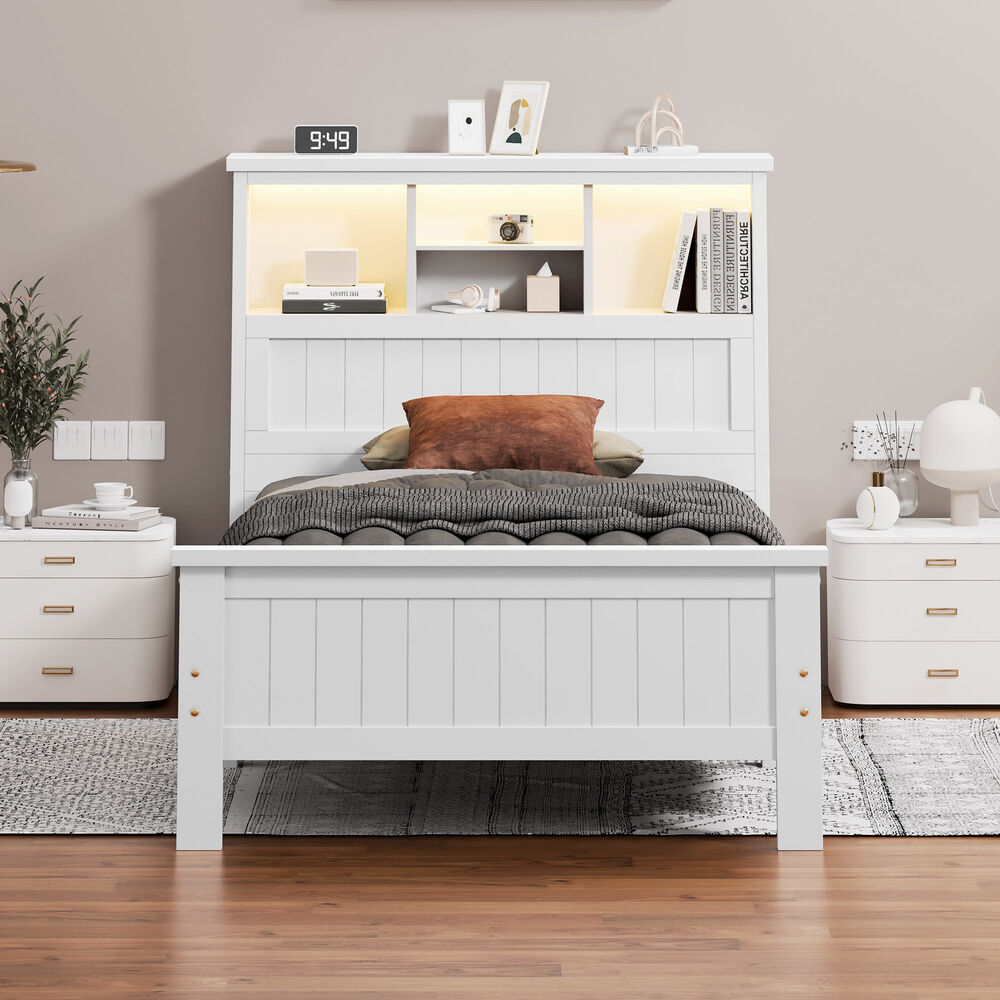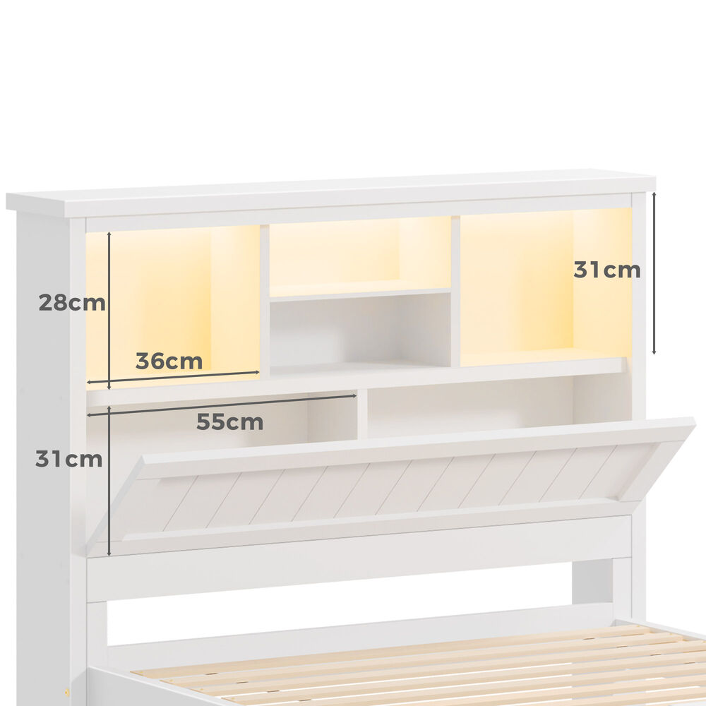 * Spacious bookshelf headboard with 6 storage zones