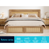 ALFORDSON Wooden Bed Frame Queen Size Rattan Bed Base with Storage Drawers Oak
