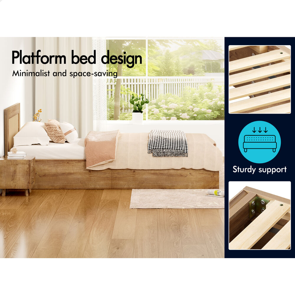 ALFORDSON Wooden Bed Frame Single Size Rattan Bed Base with Storage Drawer Oak