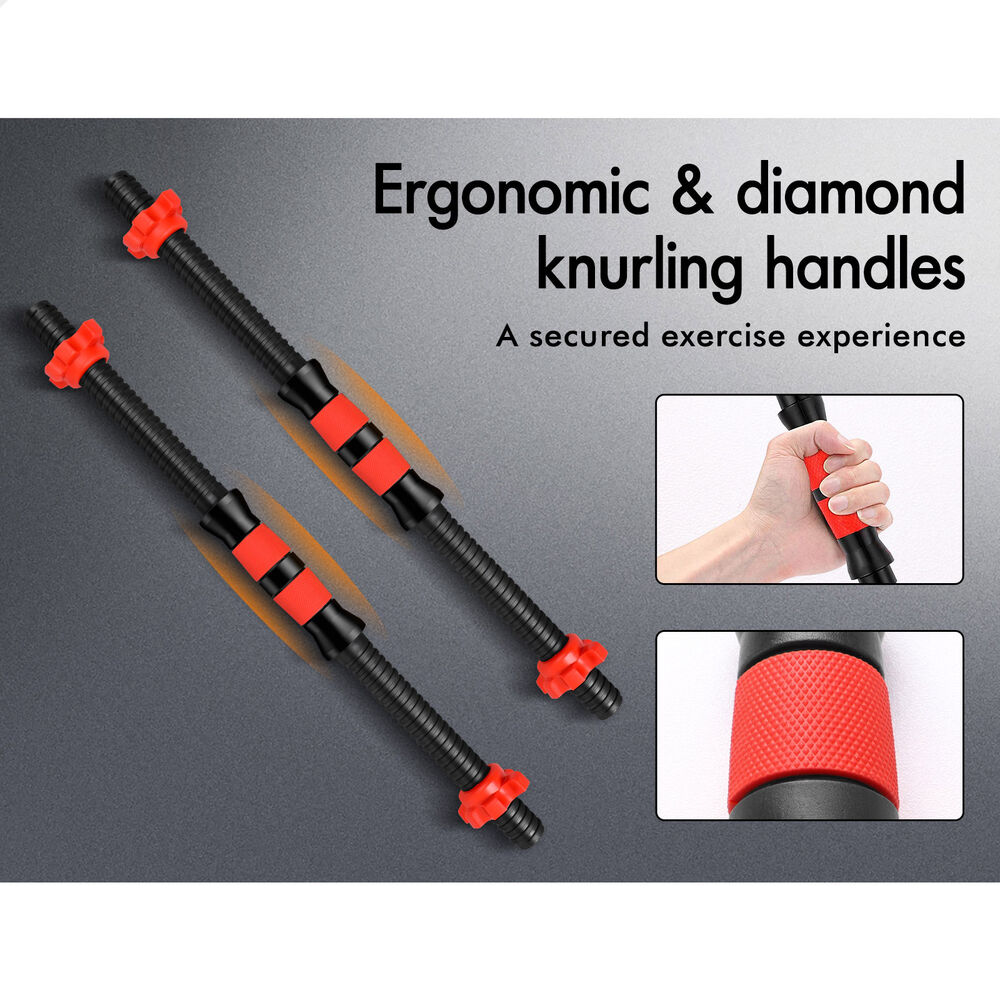 With diamond knurling and ergonomic design on the handles, working out with dumbbells is reliable. Adding or reducing weight plates are always simple by rotating the spinlock collars that are used for securing the plates.