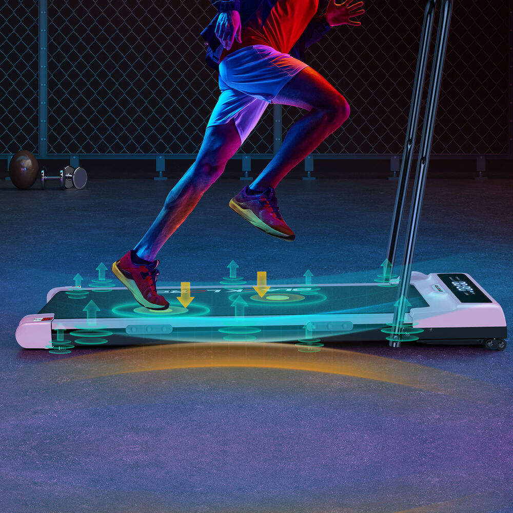 The 6-layer anti-slip and anti-static running belt, combined with our innovative powerful 10-point shock-absorption system, provides superior cushioning, actively protecting your back, joints, knees, and ankles to minimize impact. This thoughtful engineering makes it an ideal and secure choice for users of all ages to exercise comfortably at home.